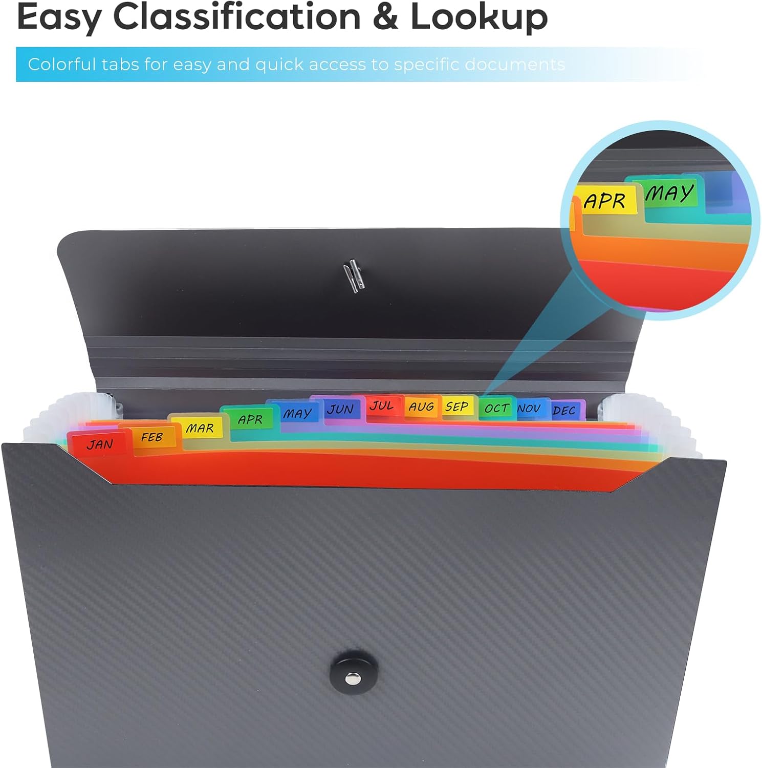 - 【COLORFUL DESIGN】Our expandable file folder features rainbow-colored inner pages and small colored labels for easy classification, making it both functional and visually appealing