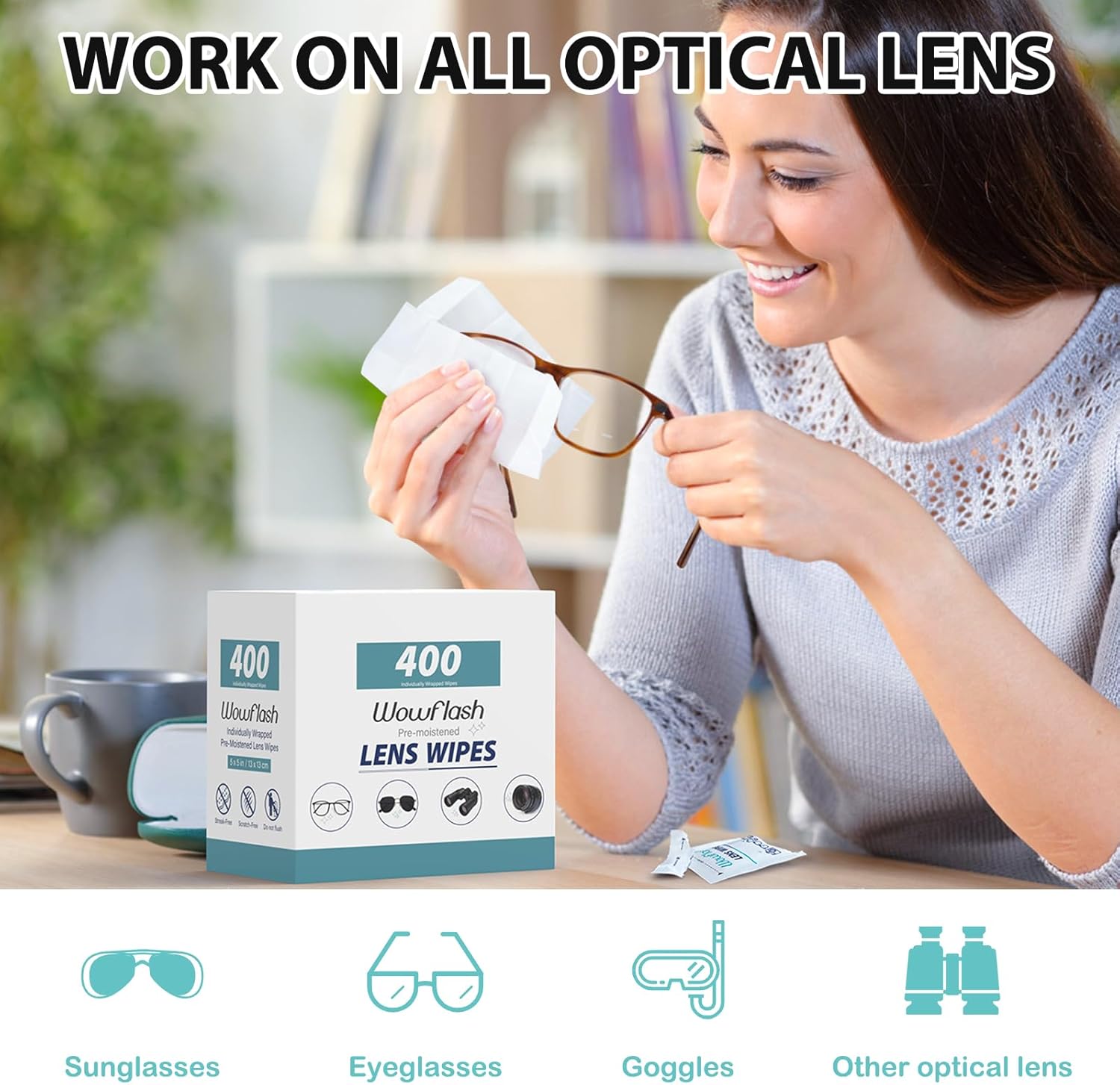 - 【Effective Cleaning】Wowflash lens wipes for eyeglasses, lens cleaning wipes with innovative formula help gently and effectively remove dirt, dust and fingerprints from Eye Glasses, Sunglass, Camera Lens, Goggles.