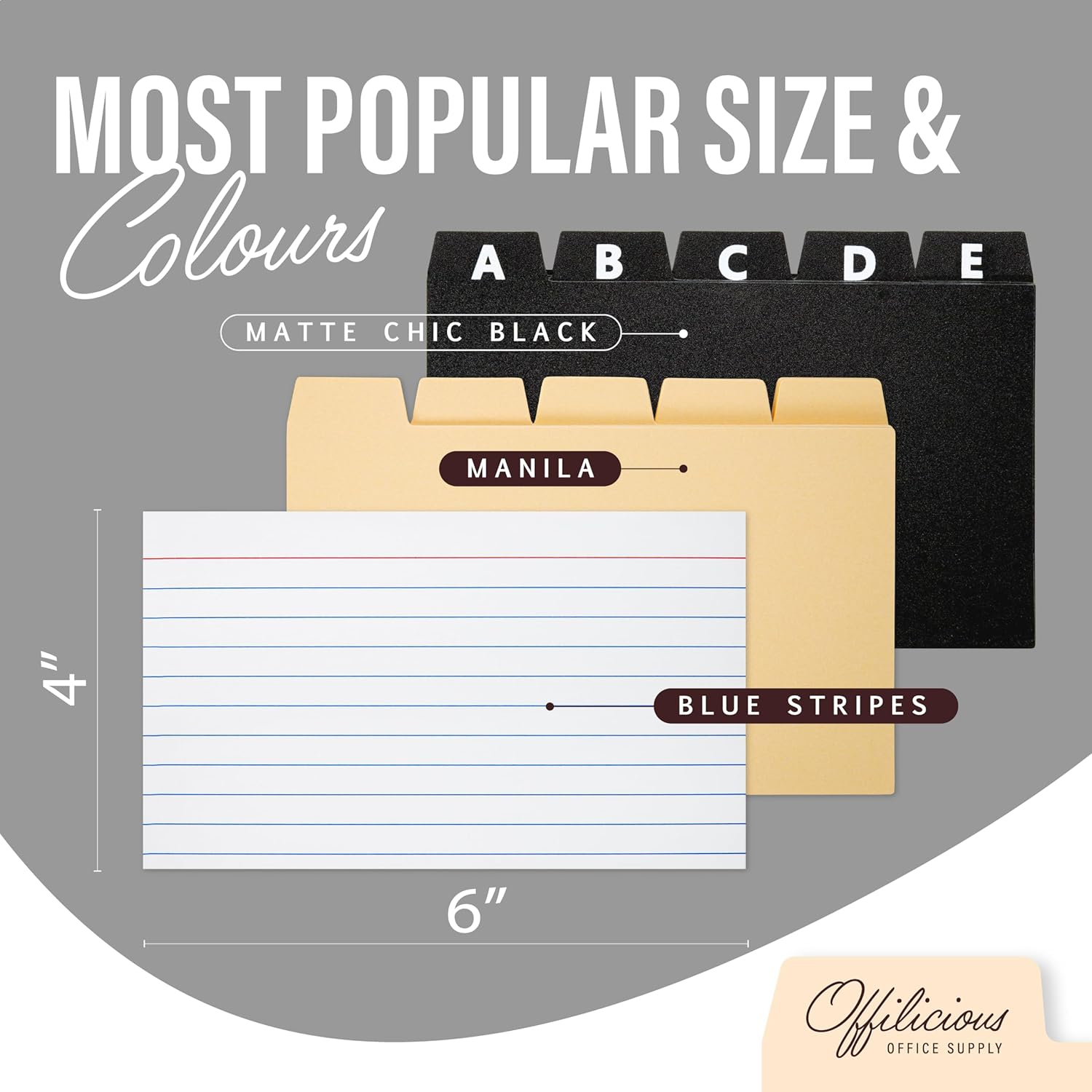 - THANKS TO BLACK ALPHABET and MANILA INDEX 4x6 INDEX CARD DIVIDERS WITH TABS you can make a quick reference of notes in our index card box 4x6 to save your energy and time.