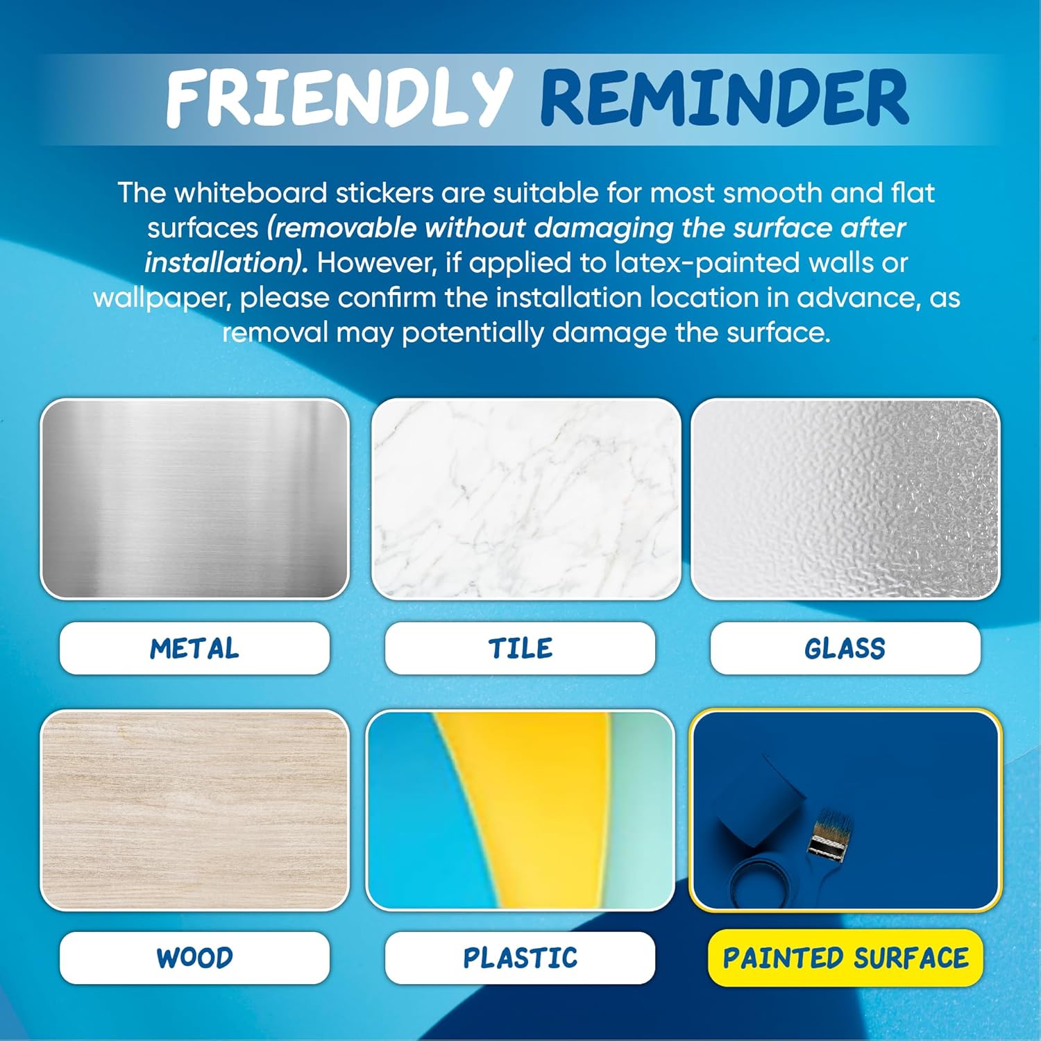 - 2-Pcs Dry Erase Board Sheets: A handy starter kit is included to help you get the most out of your whiteboard surface. This magnetic whiteboard is suitable for home, kitchen, office, classroom, studio, and more