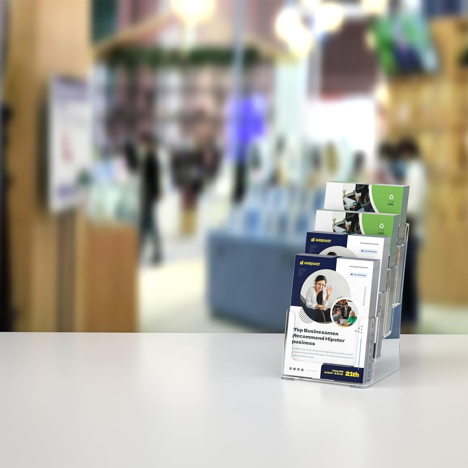 - Perfect Design:4 Tier 6x9 inch Acrylic Brochure Holder .This acrylic brochure holder is self-standing, Slanted Back Support on the back of brochure holder allows a smooth movement and more secure standing,you can use as a wall mount brochure holder