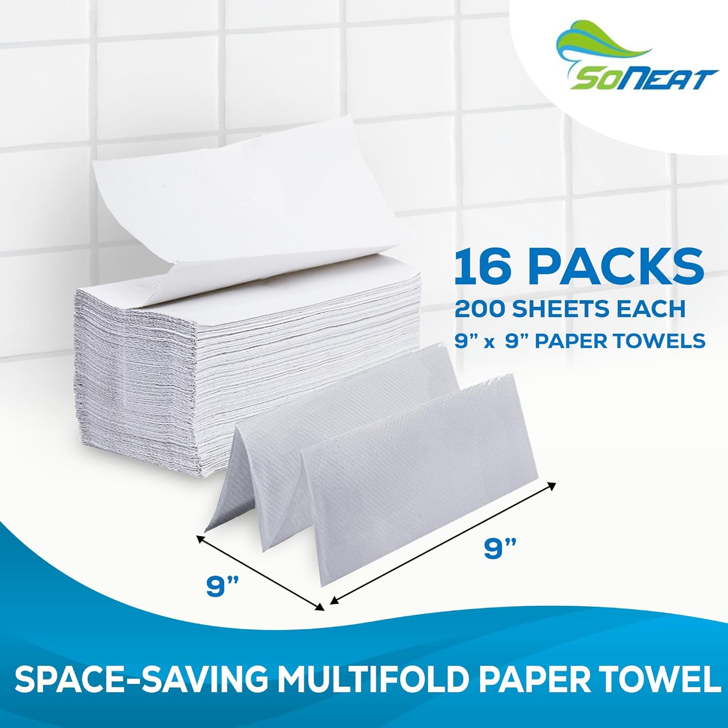 Trifold Paper Towels - 3200 Sheets Multifold Disposable Paper Hand Towels for Bathroom, Commercial, Household, Hand Paper Towels for Bathroom Dispenser, 16 Packs (200 Count/Pack)