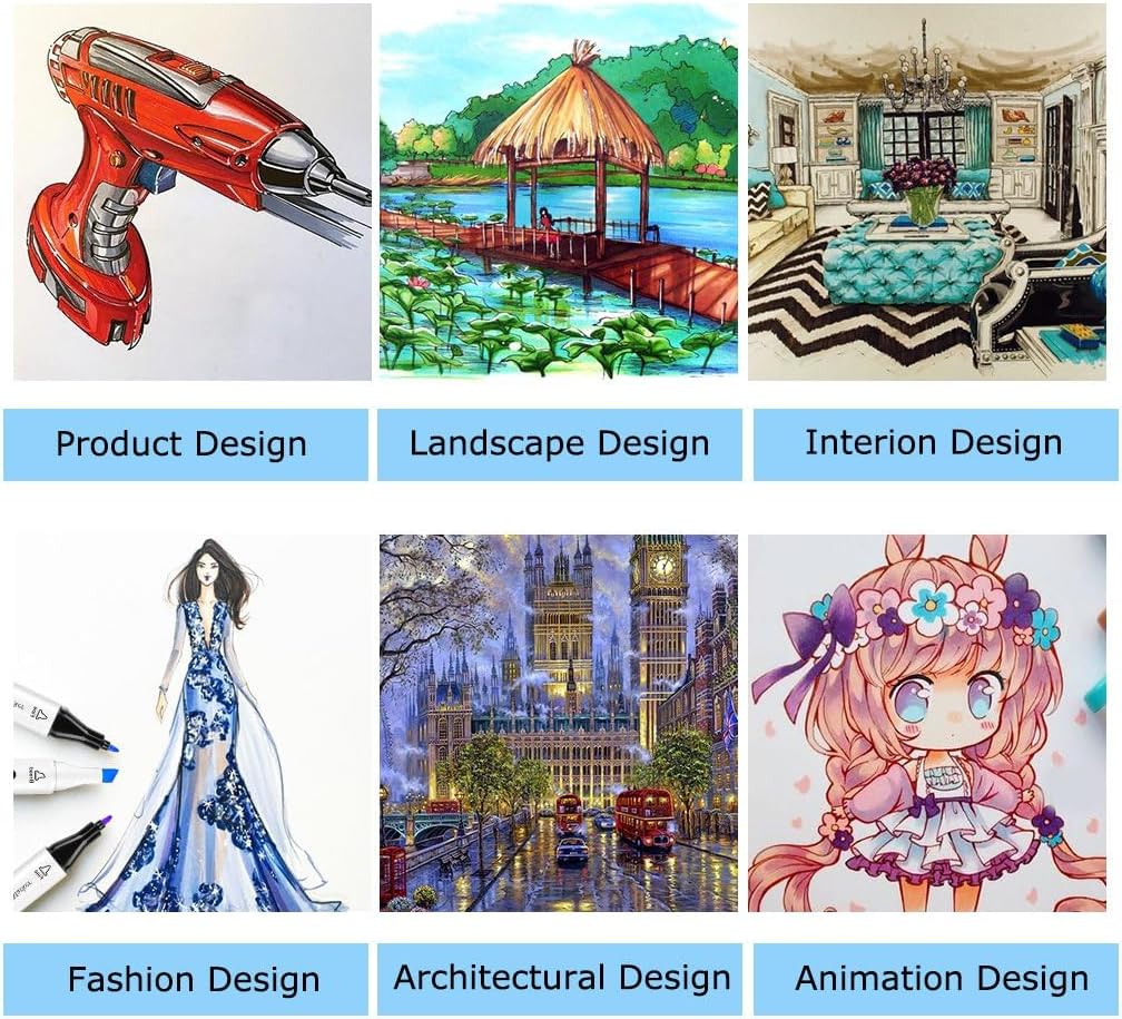 - 167 Vibrant Colors + 1 Free Blender. Valued artist markers set for adults, kids Coloring, artist sketching, illustration, drawing, calligraphy lettering beginners, highlighting, underlining, card making, architectural design, advertising rendering, landscape, and other forms of comic design etc.