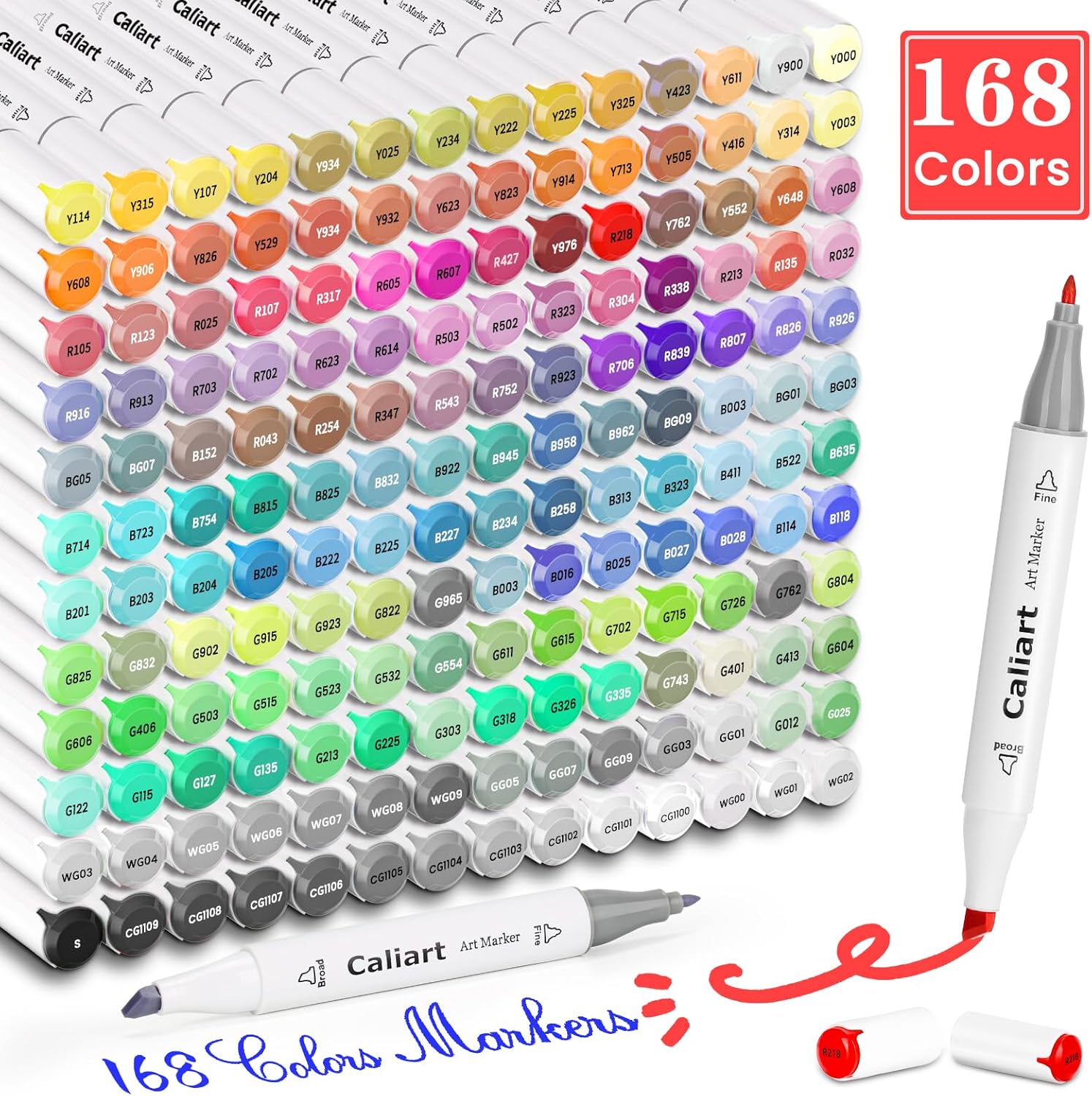 Caliart Art Markers 168 Colors Dual Tip Sketch Pens, Easter Basket Stuffers for Kids Teens Toddler, Permanent Alcohol Based Markers for Adult Book Eggs Decorations Gift Drawing Supplies Kit