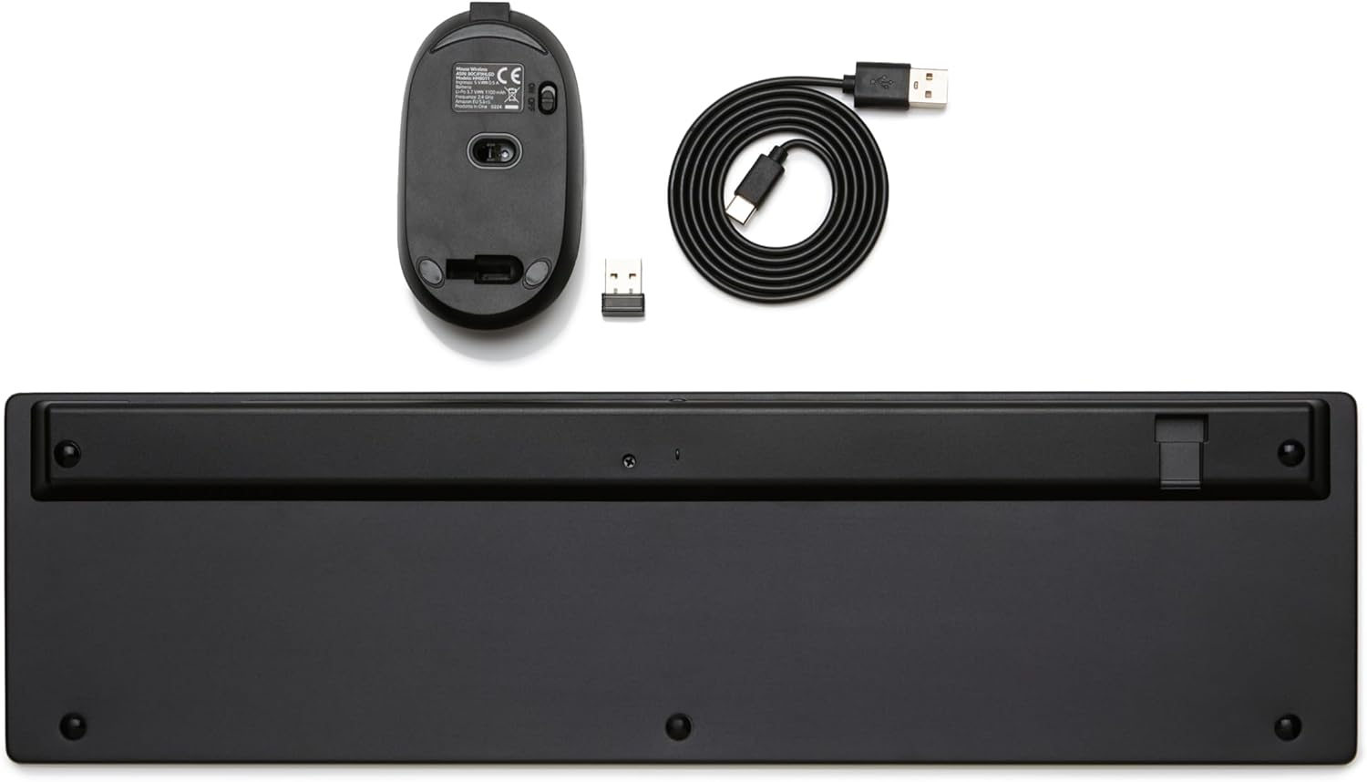 - PLUG & PLAY SIMPLICITY: Use a seamless wireless keyboard mouse combo with just one USB receiver for both devices, offering easy installation by simply plugging into your computer port for instant operation. Reciver is stored in the keyboard base.