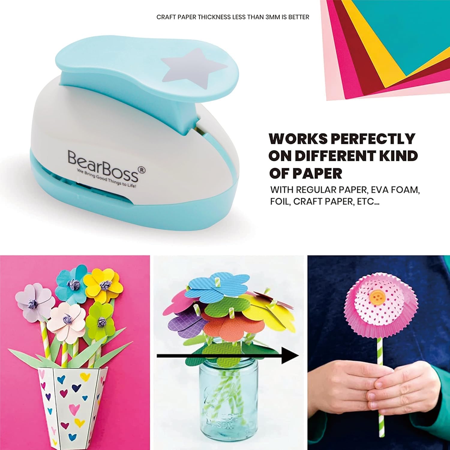 BearBoss Star Paper Punch, Handmade Scrapbook Paper Puncher, Different Size of Scrapbooking Punches Crafting Designs for Office Supplies, Card Making, DIY Albums Photos, Classic White