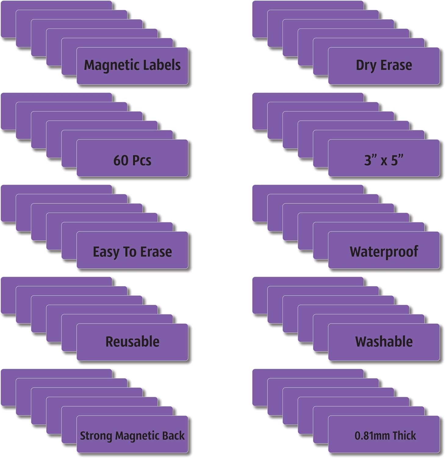 Magnetic Dry Erase Magnets Labels 3x1 inches, Reusable Name Tags, Organizing Schedules in Office/Classroom. Work on Fridge/White Board (Purple 60Pcs)