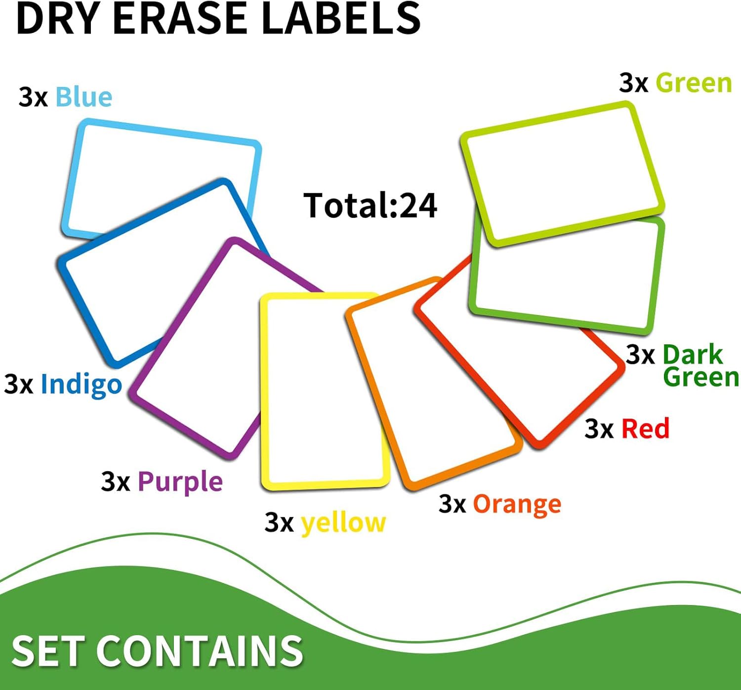 - Dry Erase Labels for storage bin, whitboard, moving labels, tag labels, kids labels and more, hold strong with removable self adhesive designed to stick firmly, but will peel away cleanly and easily when needed. It comes with 24pcs 2" x 4" Dry Erase stickers