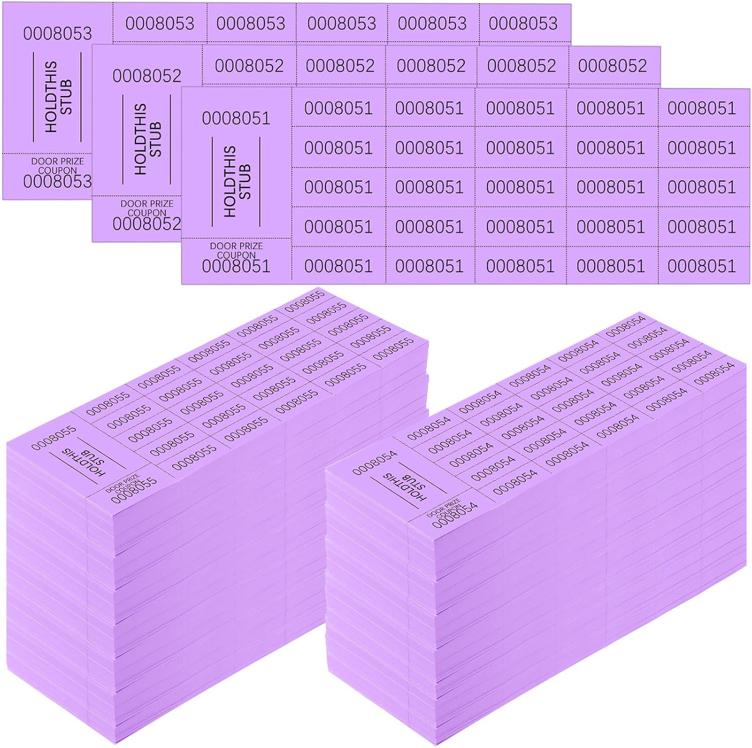 - Auction Tickets: you will receive 2000 sheets raffle tickets in purple, each sheet with 25 bid numbers, ideal for Chinese auction, penny auction, fund raising event and so on