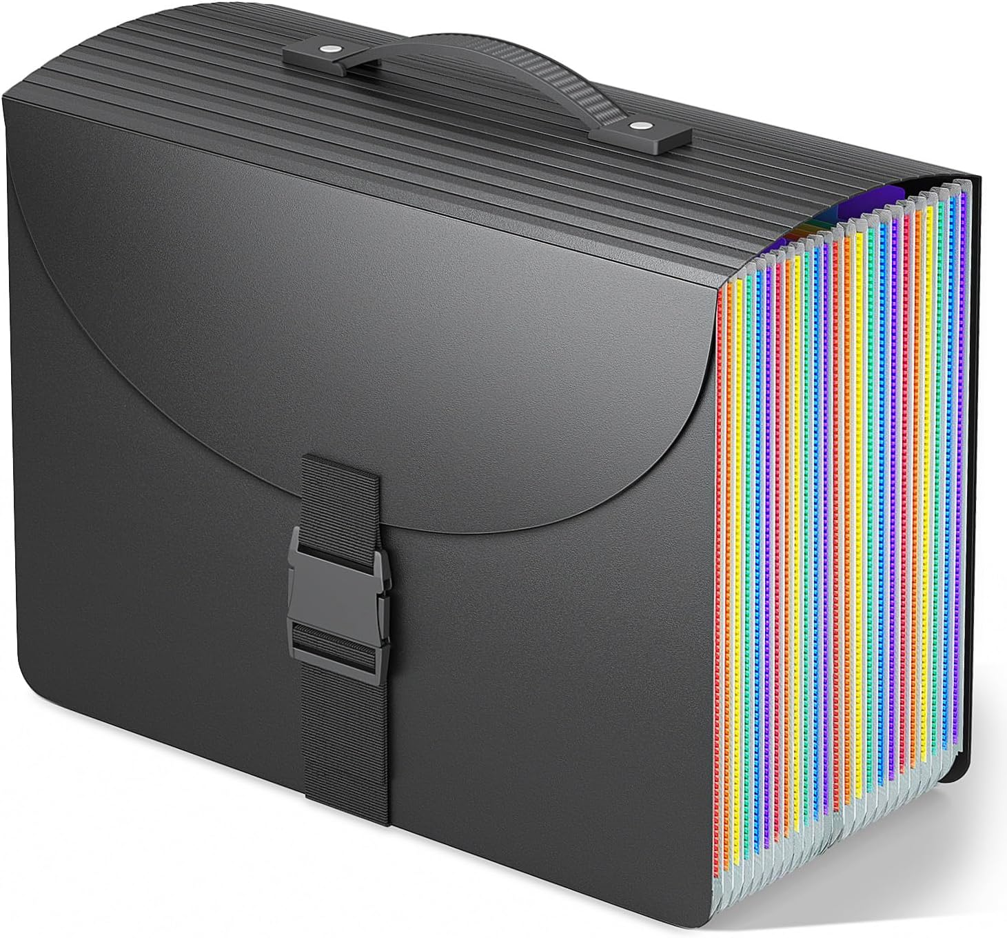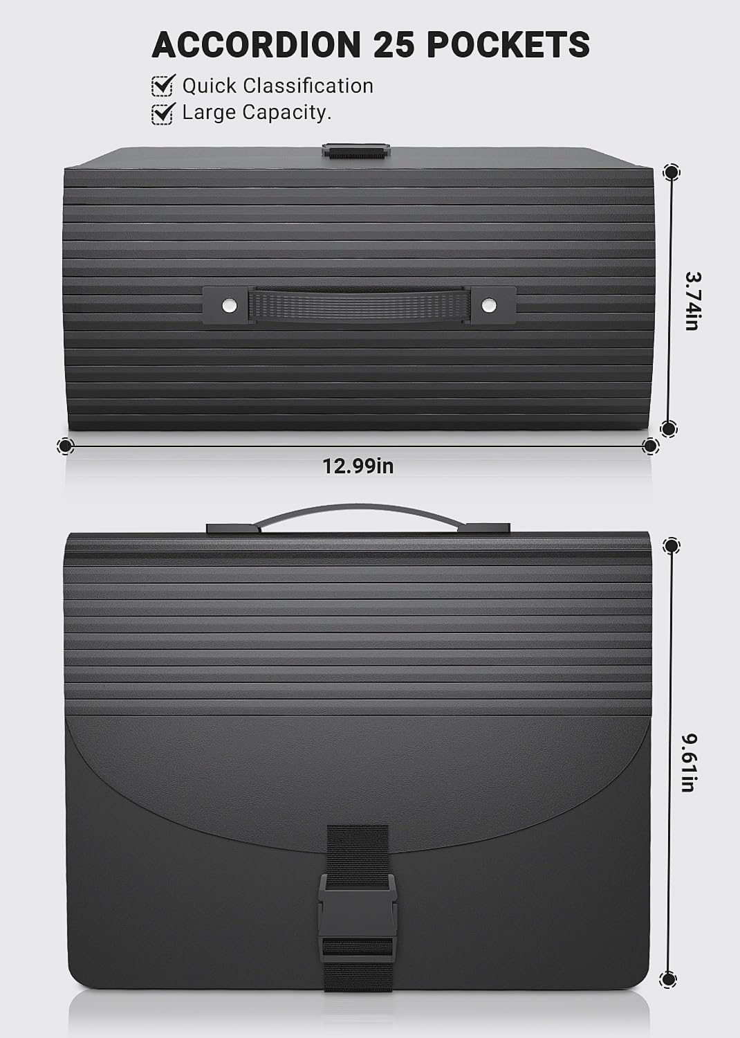 - ✔【UPGRADED】This innovative file organizer,designed with a durable plastic handle and a fashion buckle, successfully upgraded from traditional expanding file folders. More easily take all important documents away to any time and anywhere when hold a good amount of documents, the buckle is very good to protect the safety of files.