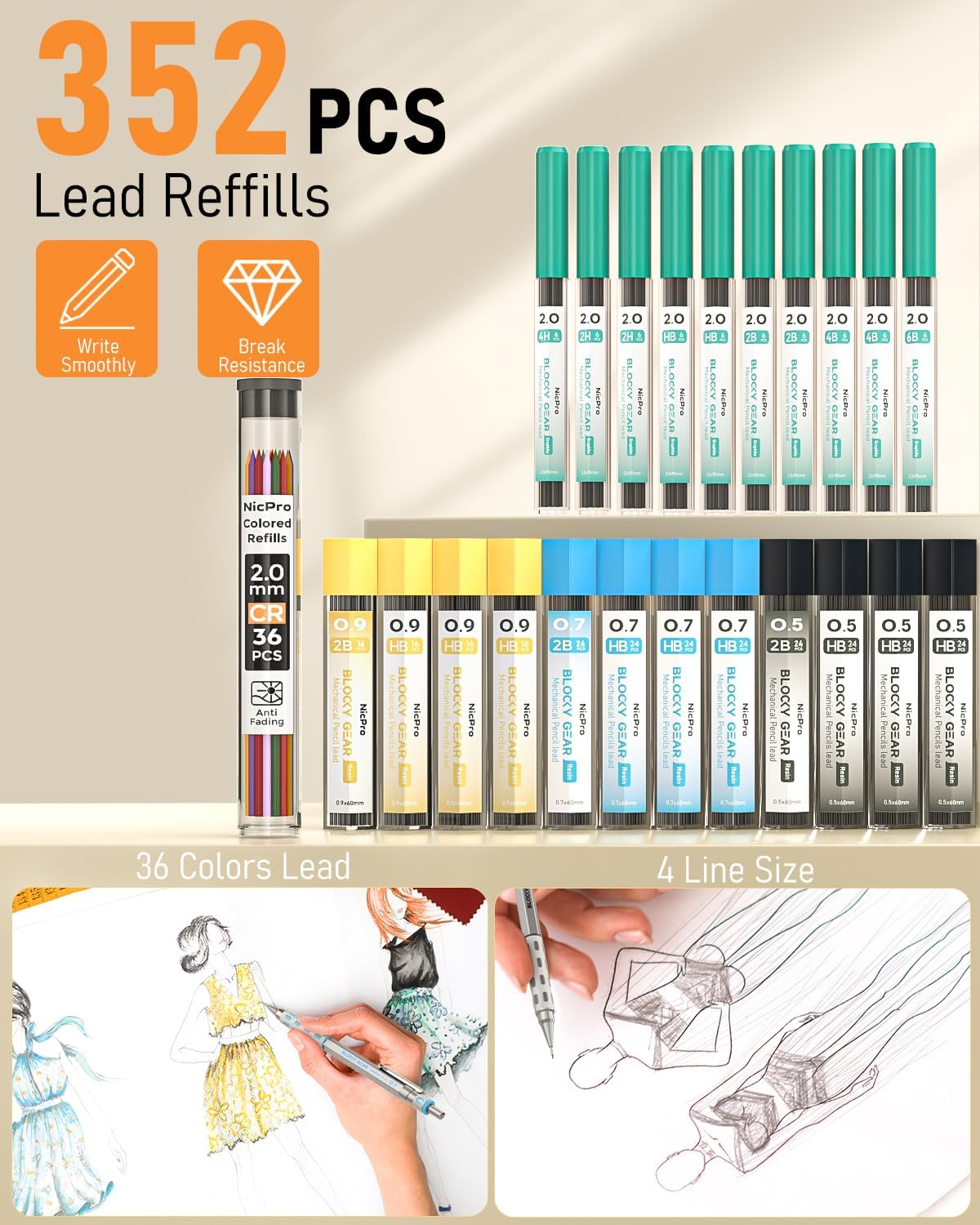 - Perfect Artist Drawing Pencil Set: Includes 3pcs 0.5/0.7/0.9mm mechanical pencils, 3pcs 2.0mm lead pencils. Total 23 tubes, 352pcs graphite lead refills (6B, 4B, 2B, HB, 2H, 4H, Colors), 3pcs 4B soft erasers, 1 kneaded eraser, 27pcs eraser refills and 3 sharpeners. Nicpro 40pcs sketching mechanical pencil set to meet your daily art writing and drafting needs