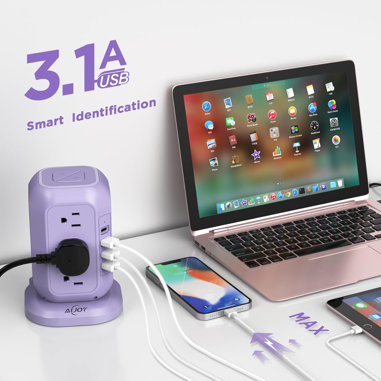 USB C Power Strip Tower, Surge Protector with 12 AC Outlet and 4 USB Ports, AiJoy 10 FT Extension Cord, 1200J Power Strip Surge Protector, USB Charging Station, Office Supplies, Dorm Essentials, Woman