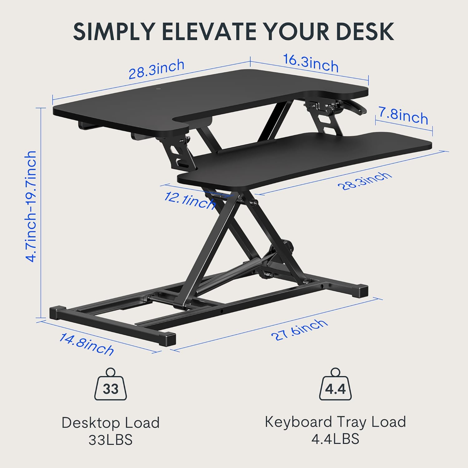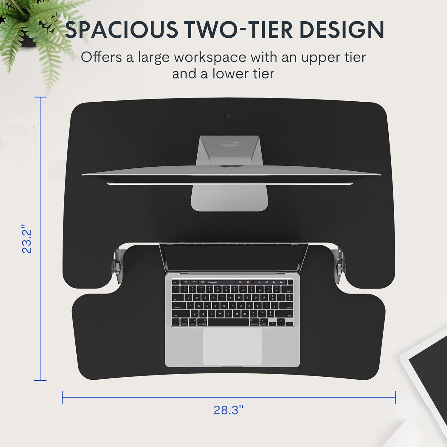 FLEXISPOT 28'' Black Height Adjustable Standing Desk Converter Sit-to-Stand Desk Riser with Wide Keyboard Tray Workstation for Home and Office