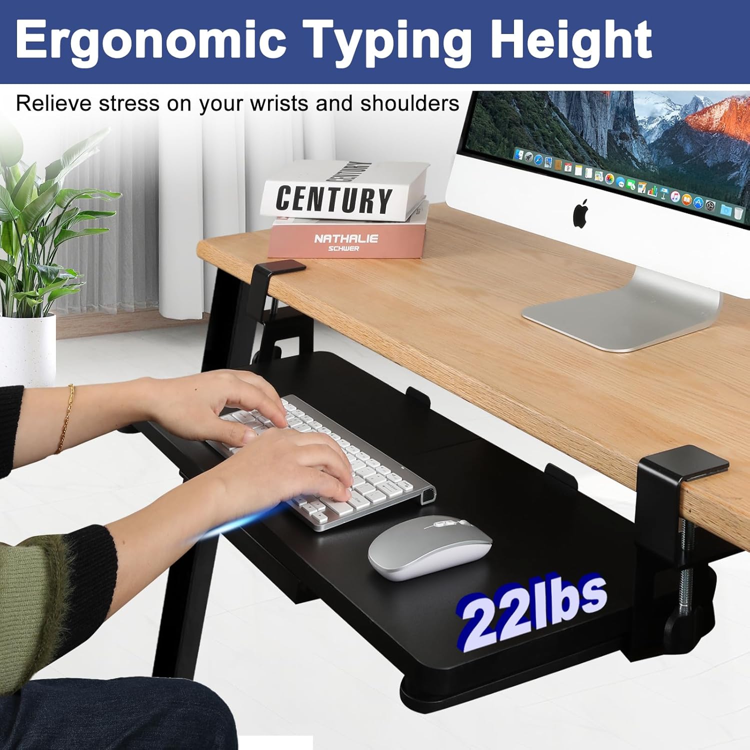 - [Ergonomic Benefits] - The desk clip keyboard tray is designed to elevate the keyboard and mouse to a more ergonomic height, reducing stress on shoulder and neck muscles; eliminating potential stress on the wrists; encouraging proper posture and allowing proper viewing distance.