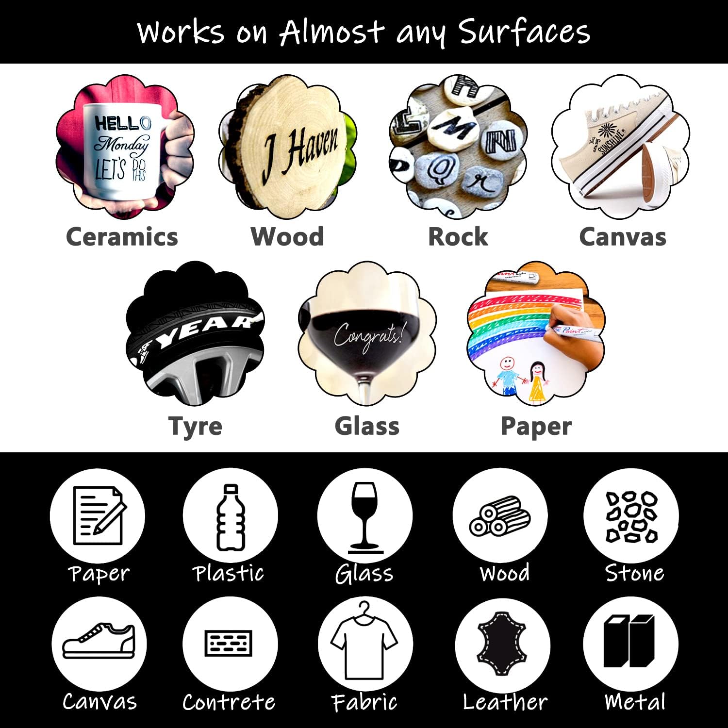 - VERSATILE: TFIVE silver permanent marker paint pen is the best choice to work on a variety of surfaces. Including rock painting ceramic wood leather plastic fabric canvas stone glass metallic wood chalkboard craft supplies etc