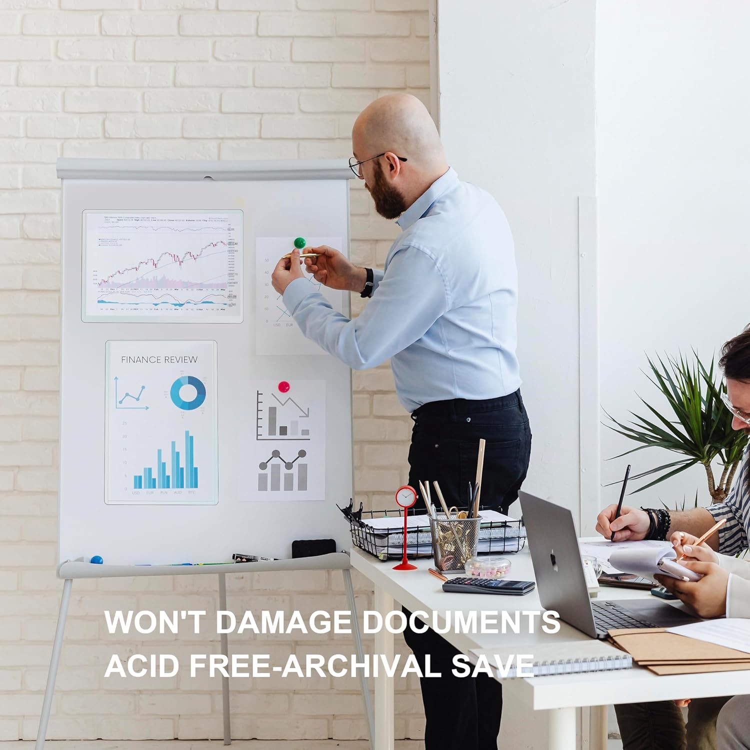 - Store and Display Precious Documents:These clear plastic magnetic document holders offer basic protection for your precious documents, safeguarding them from fading, dust, stains, scratches, grease, and water. This minimizes damage to the paper. With their transparent appearance, you can read or display the documents without removing them from the holders, providing a convenient solution for review and operation.