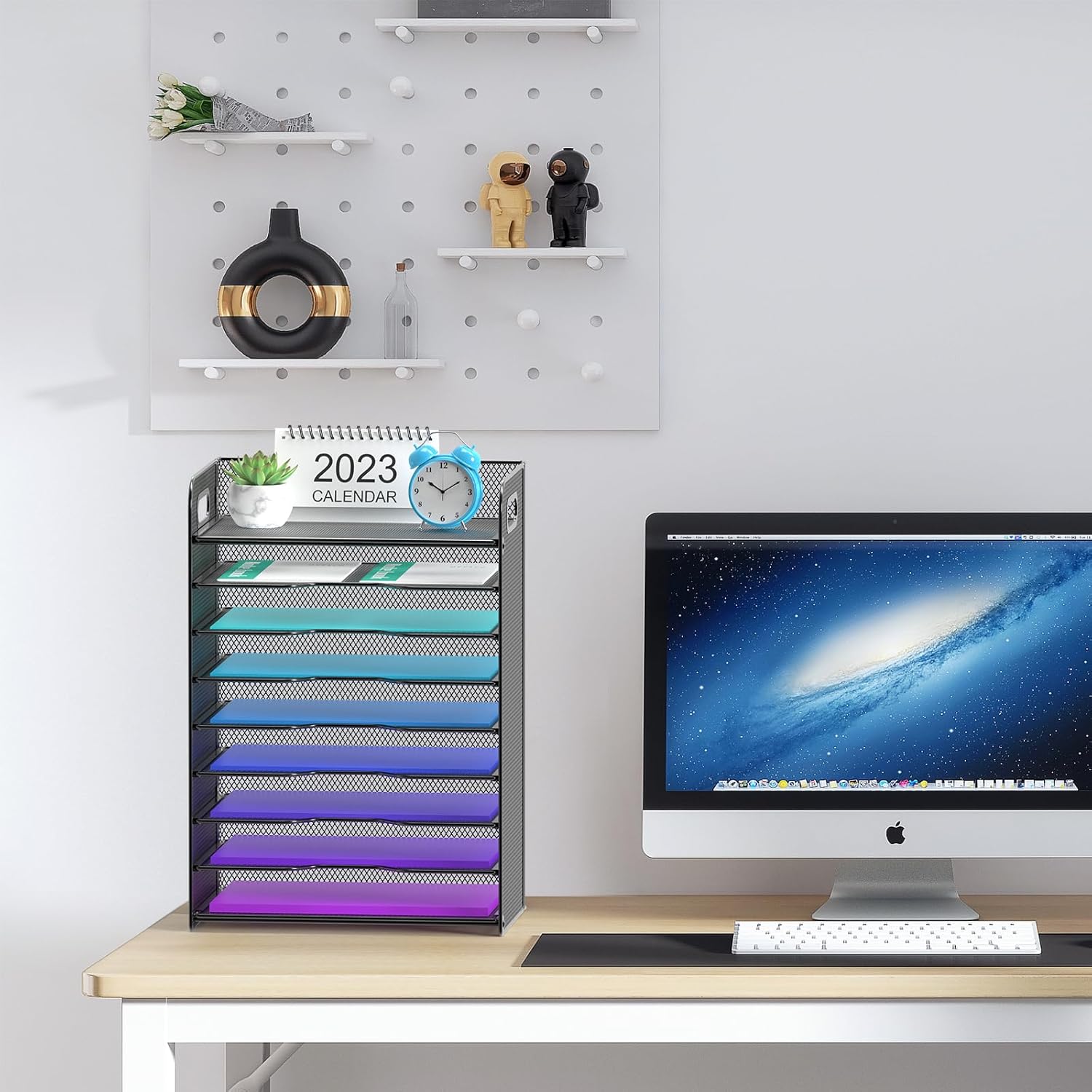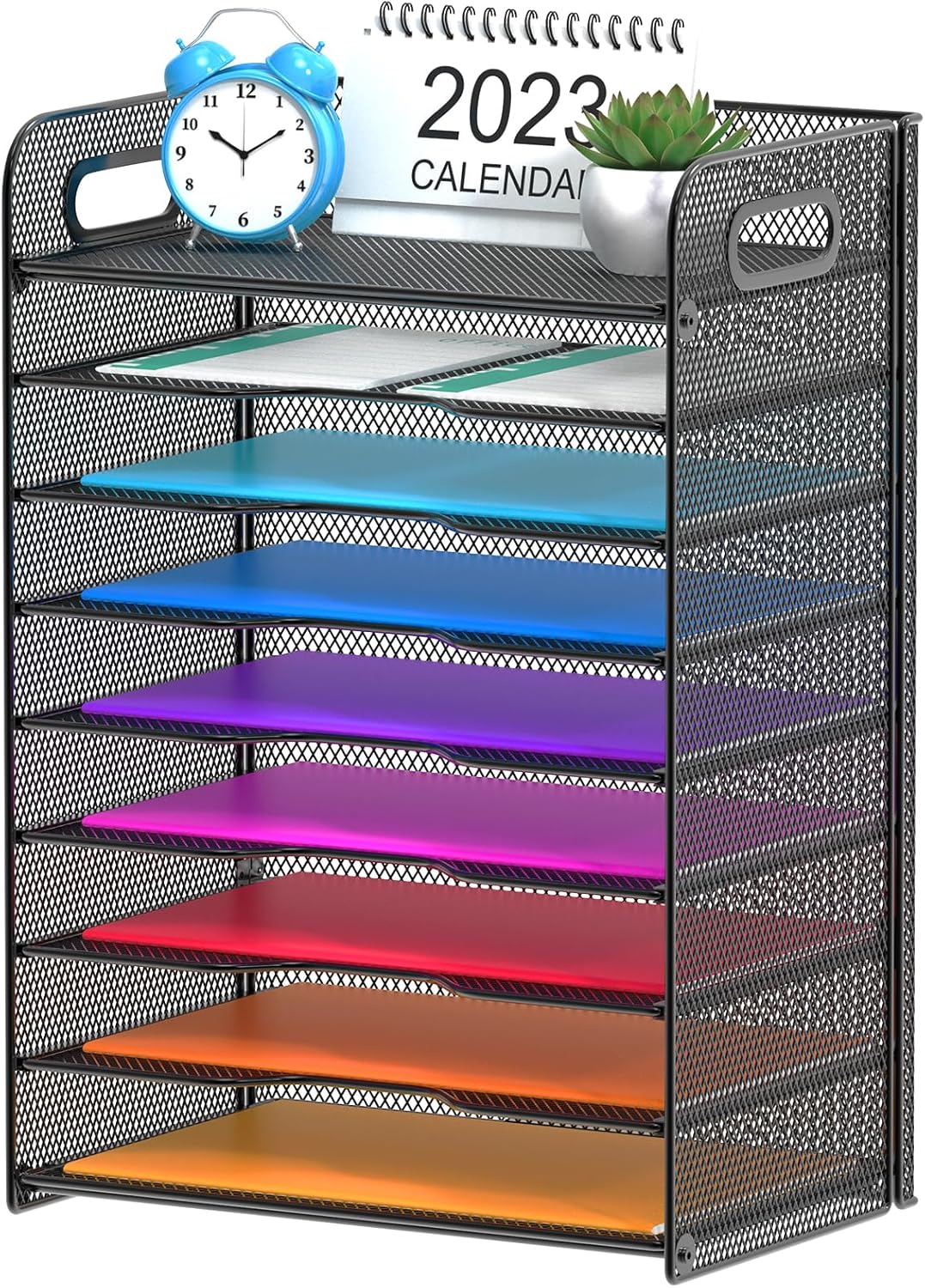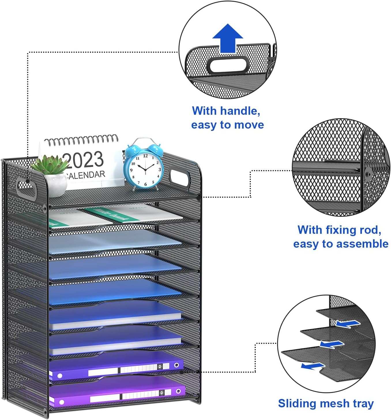 Samstar 9 Tier Desk Organizer, Mesh Paper Letter Tray File Rack Shelves Paper Sorter Storage with Handles, Black