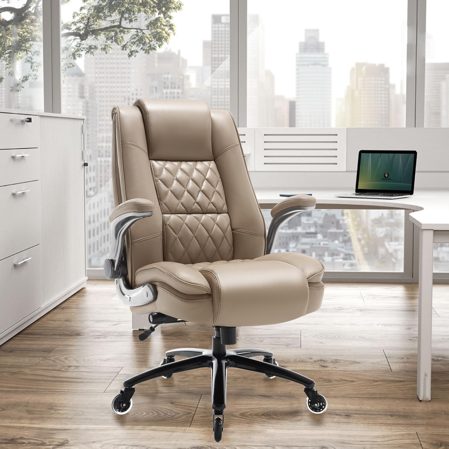 EZAKI High Back Office Chair-Flip-up Arms Executive Computer Desk Chair, Built-in Lumbar Support Thick Padded Adjustable Rock Tension Ergonomic Design for Back Pain