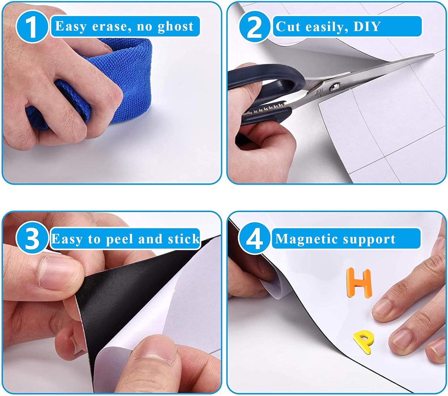 - 【WIDELY USED】: This multifunctional white board film is suitable for various occasions, including offices, schools, homes, etc. From shopping lists to to-do lists and children's graffiti, as well as classroom teaching, Qiytecno white board sticker is a great choice, and it is also very suitable for daily meetings, presentations, to-do lists, teaching aids, and creative projects. Let your imagination run wild and use this essential magnetic white board to make your life more convenient.
