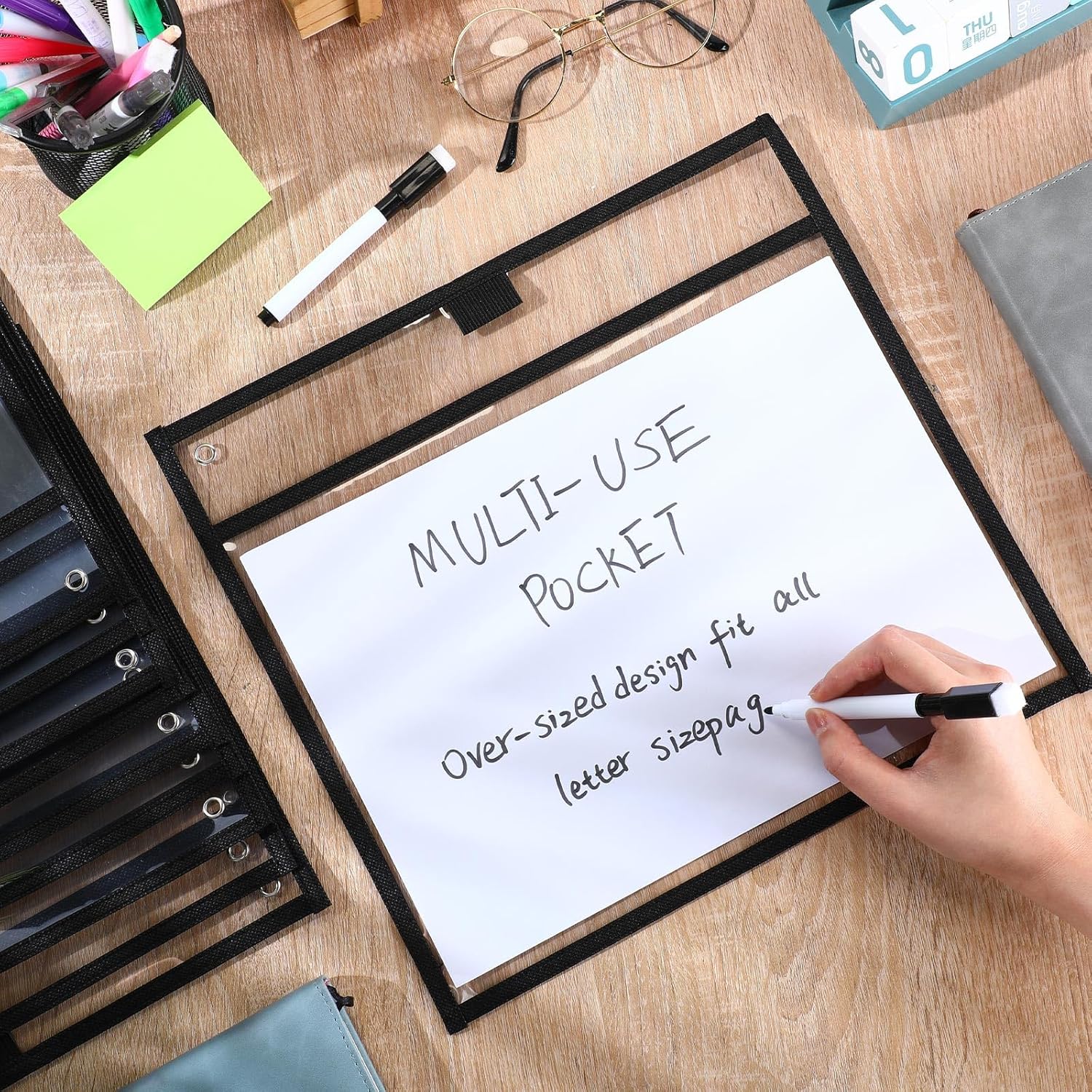 - Convenient and Reusable: this dry erase pockets can be reused, you don't have to change it often, and you can wipe it off after you finish writing, keeps you from wasting paper and saves you time and cost