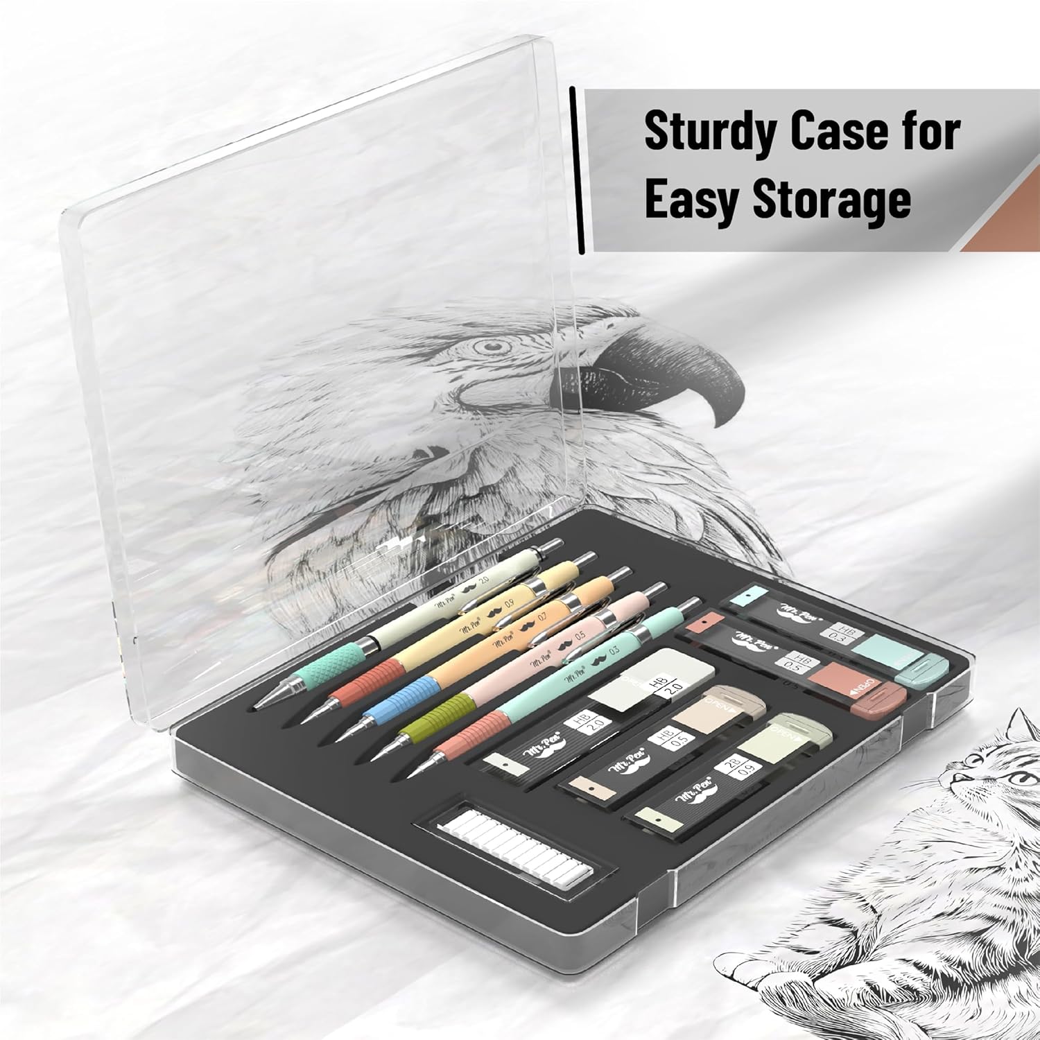 - The set includes 5 tubes of HB lead refills (one for each size) and 10 eraser refills, providing all the essentials for extended use.