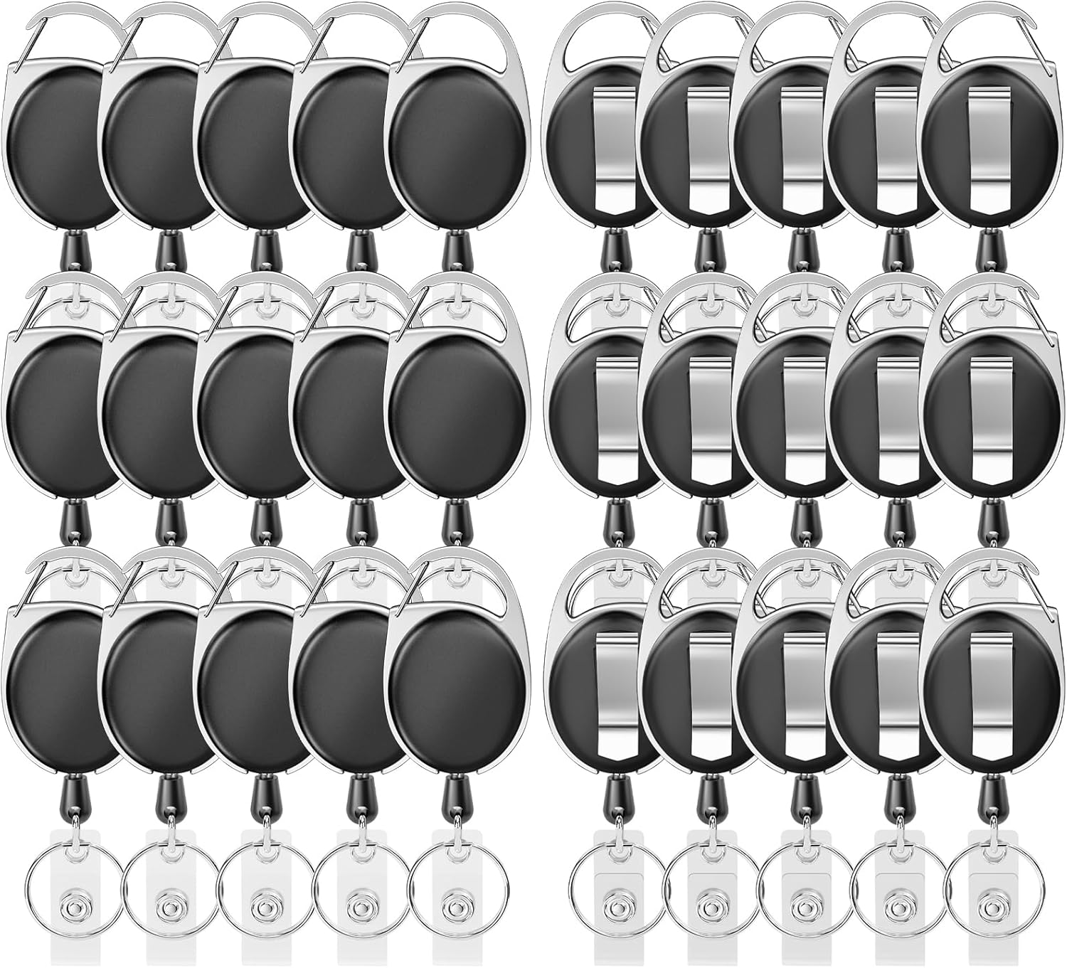 Retractable Badge Holder with Carabiner Reel Clip and Key Ring for ID Card Key Keychain Holders Black 30 Pieces