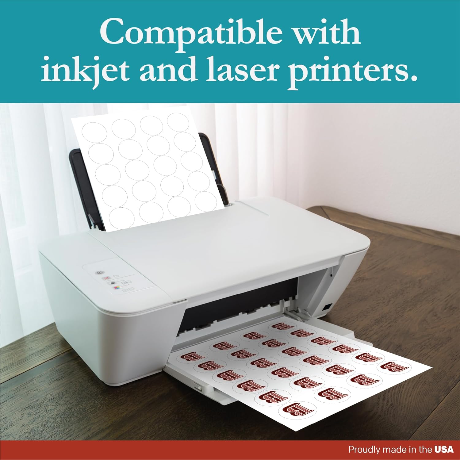 Premium Label Supply White Sticker Round Labels – 1-2/3" Circle – Laser/Inkjet Compatible – (24 per Sheet), 25 Sheets – 600 Total Adhesive Labels