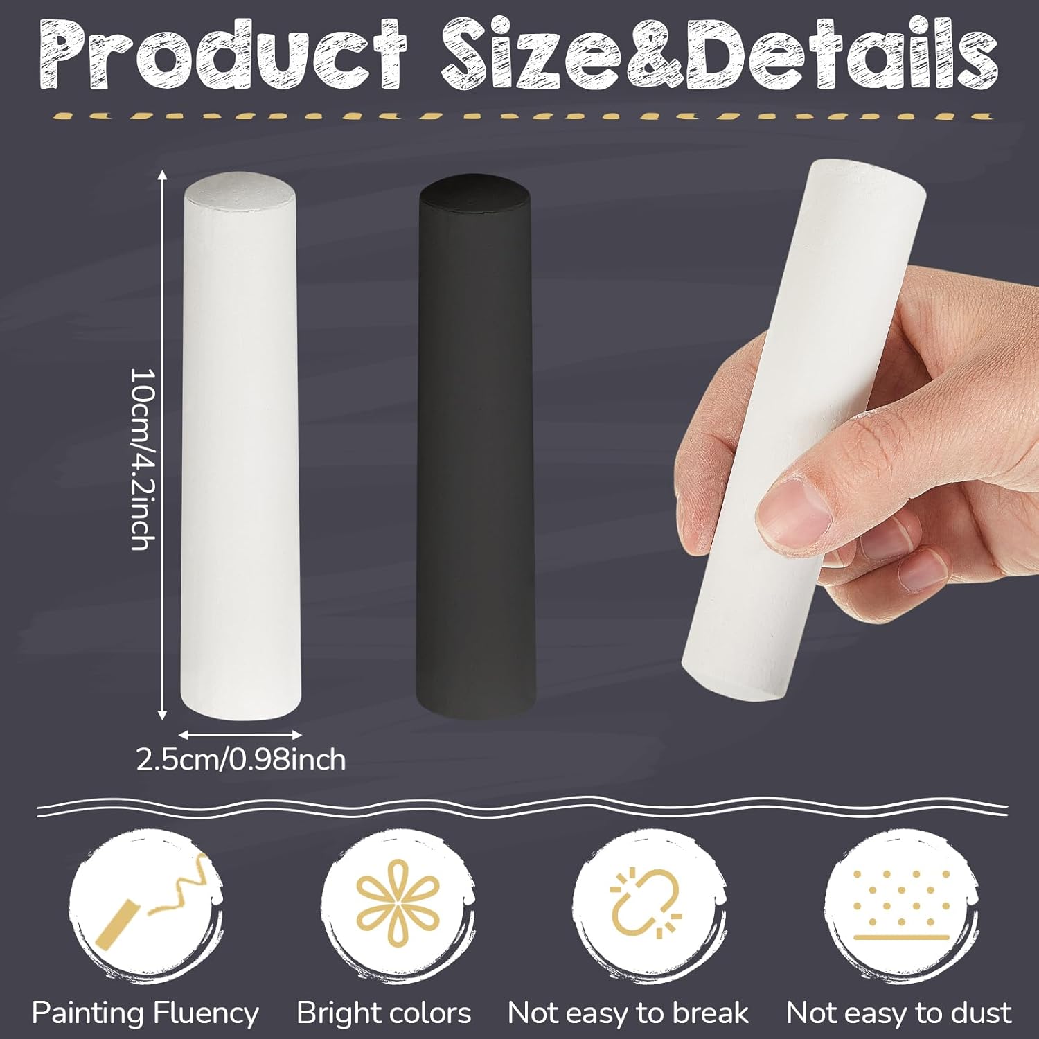 - Ample Quantity for Fun: our package includes 100 pieces of jumbo sidewalk chalks, coming in 2 different colors, black and white, 50 pieces per color, offering fun creativity; This means you will not have to worry about running out chalk in the middle of your art masterpiece or a fun afternoon of play, suitable for schools, playgroups, or other activities