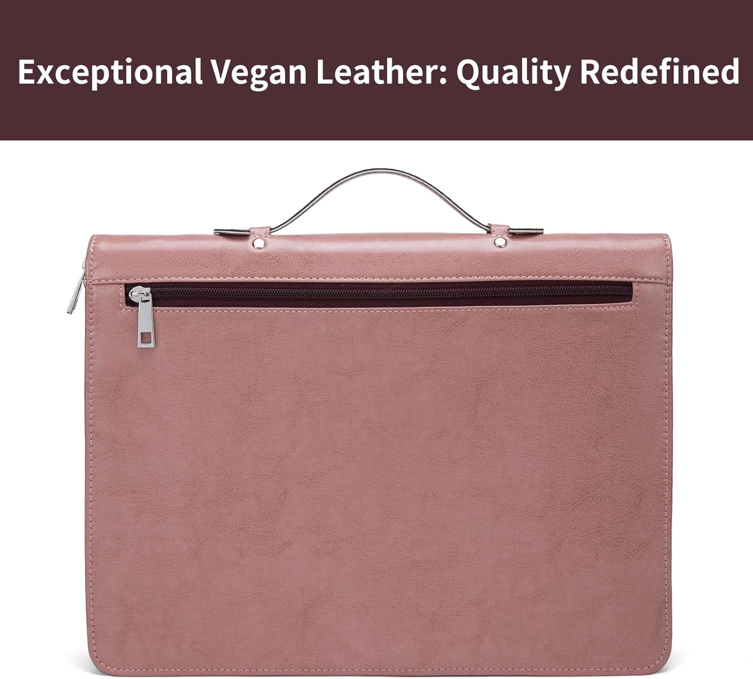 Personalized Vegan Leather Portfolio with Hidden Handle, Zippered Front Pocket, 8.5 x 11 Notebook Holder, Custom Business Legal Padfolio Travel Folio for Women, Pink