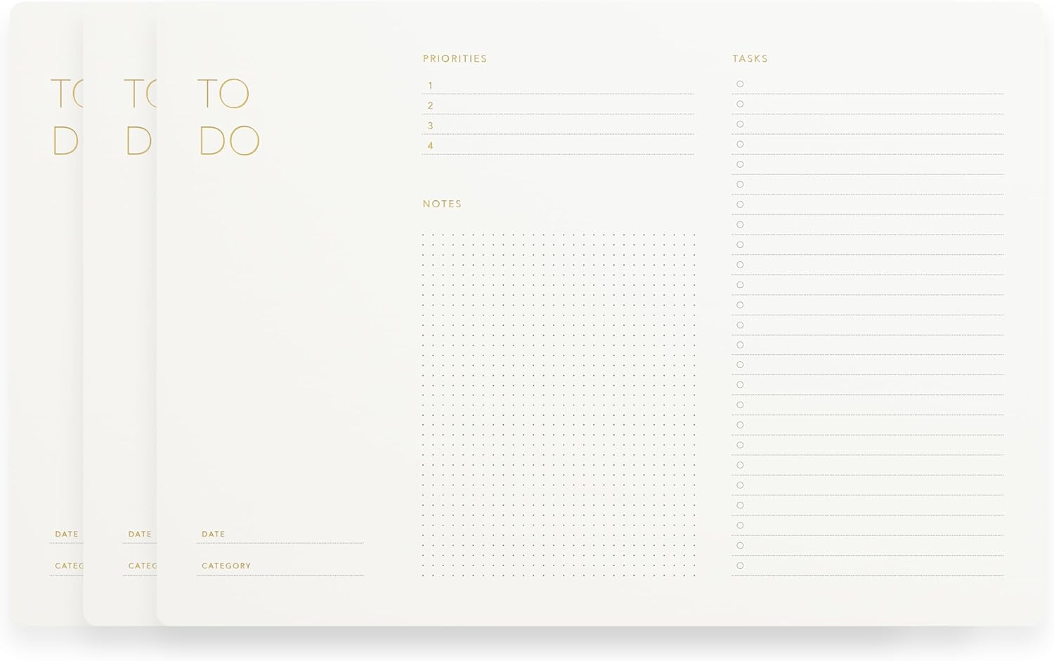 Elegant To Do List Notepad with Mouse Pad Feature, 3 Pack, 11.22" x 7.87", 50 Tear-Off Sheets (50 Each), Gold Foiled, Daily Planning, Eco-friendly To Do List Planner, FSC™ Certified To Do List Notebook for Work