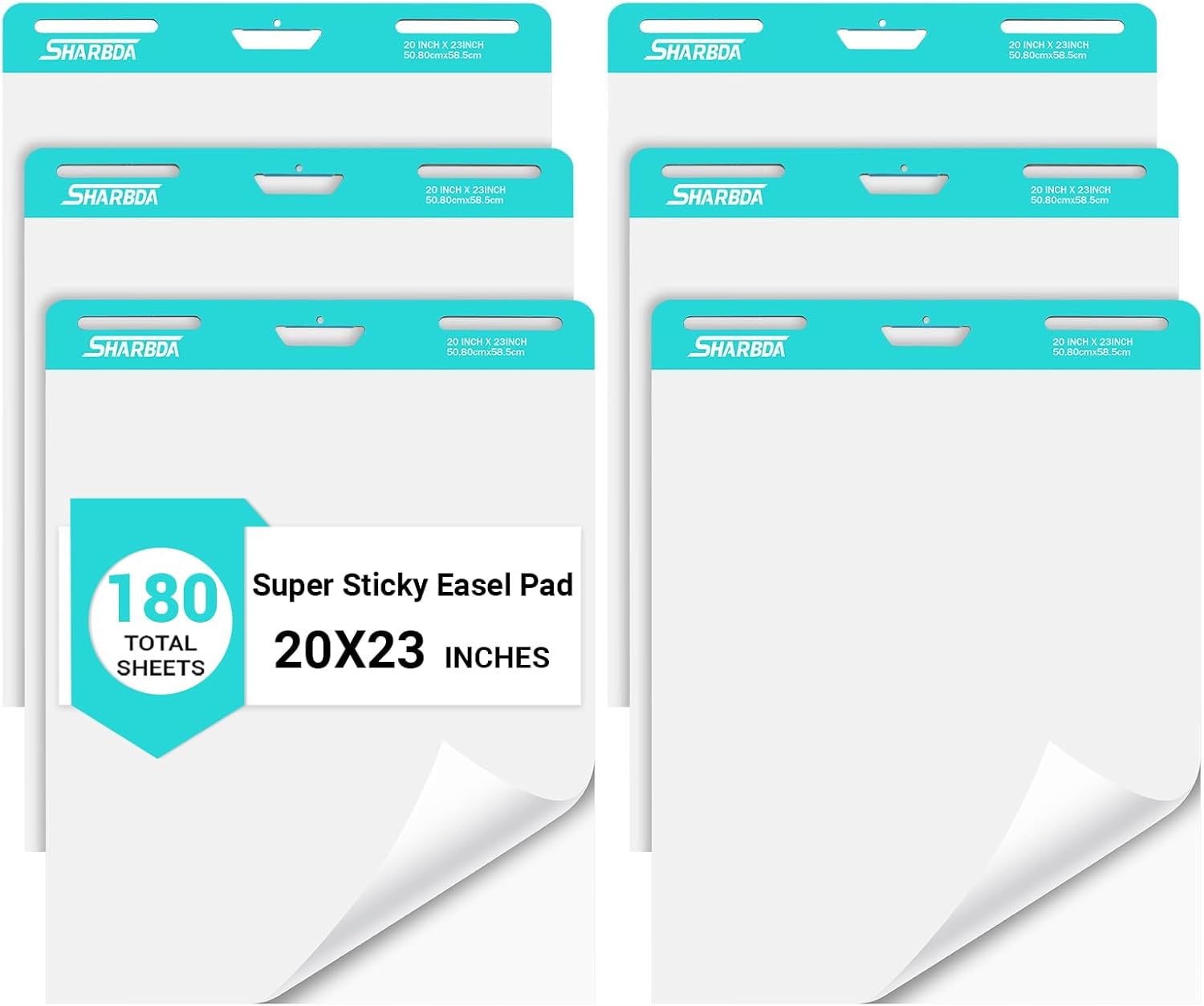 Sticky Easel Pad,20 in x 23 in,Flip Chart Paper,Sticky Chart Paper for Teachers,Self-Stick Easel Paper,Super Sticky & Bleed-Resistant, 30 Sheets/Pad, 6 Pads