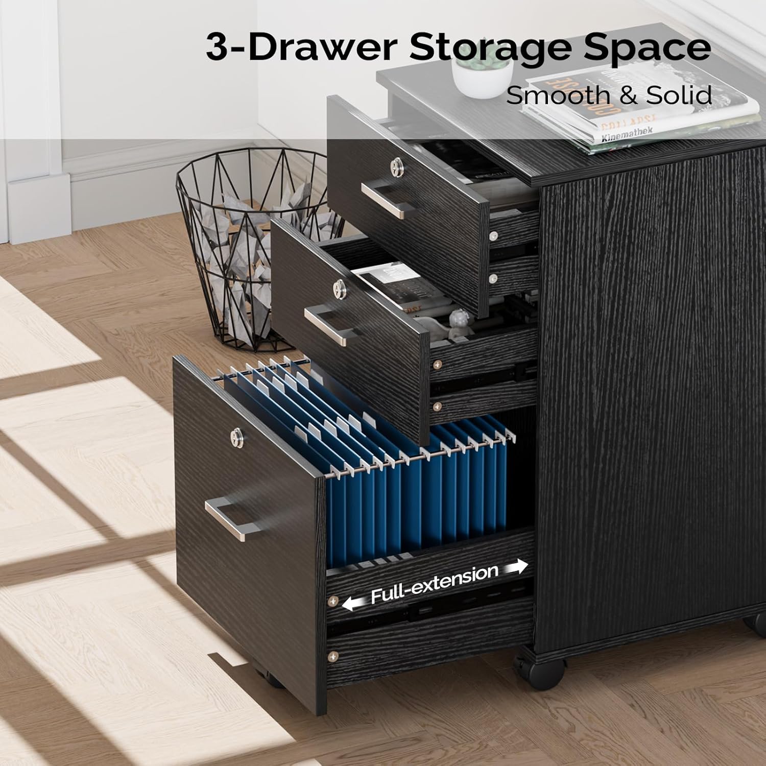 - 【Security & Privacy】Locking file cabinet is great for storing confidential materials. Each drawer features an upgraded quality lock and two keys. Vingli black file cabinet with lock is perfect for placement under employees' desks, home offices, living rooms, student dormitories, and more