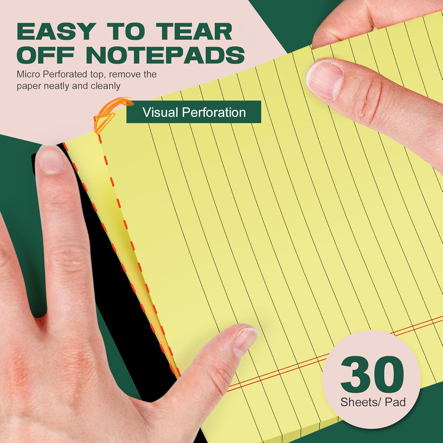 - 【Easy to Tear off 】:These 5x8 lined writing pads have no holes in the block, there are slight holes at the top of the pages that don't tear easily when flipped back and forth, but do tear easily when intentionally torn. Available in miniature perforated sheets to help you tear off pages easily, neatly, quickly, and accurately, whether for work, school, or personal use, these 5" x 8" legal pads sheets will make your life easier.