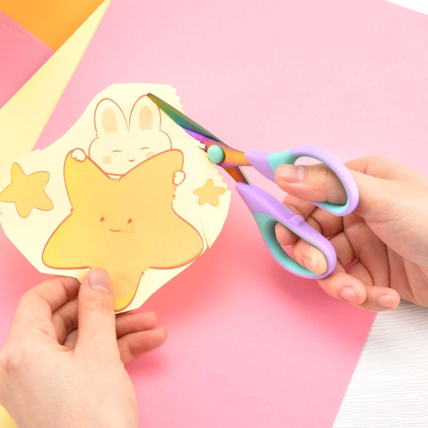 Craft Scissors Set of 3 pack, Sharp Rainbow Titanium Coating All Purpose Scissors, Ergonomic Semi-Soft Rubber Grip, Suitable for School, Office and Household Use, 9.2''/8.5''/5.6"