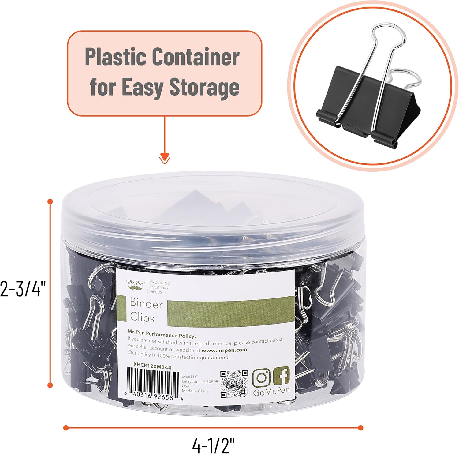 - Mr. Pen presents a comprehensive set of 120 black binder clips, conveniently packed in a clear, reusable container for easy storage and access.