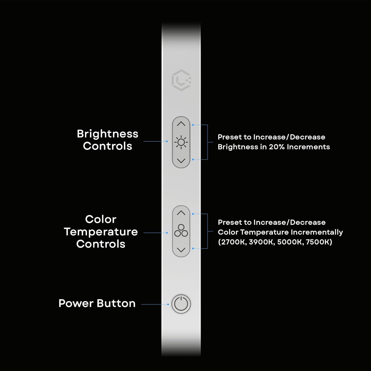 - CUSTOMIZABLE LIGHTING EXPERIENCE: Take control of your lighting with adjustable brightness (1-100%) and color temperature settings, allowing you to create the ideal lighting conditions for maximum productivity and comfort.
