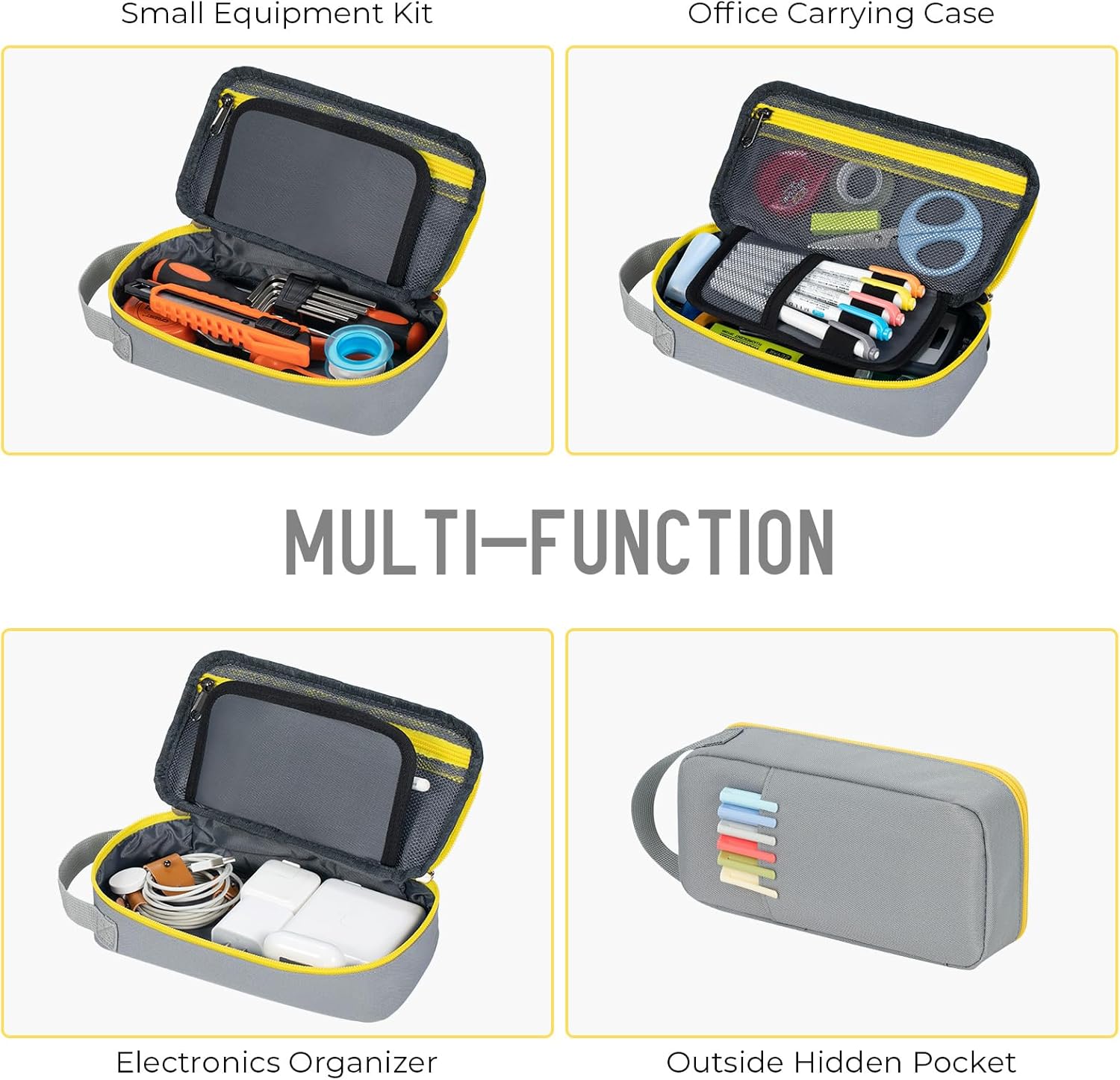 - PREMIUM MATERIAL: Pencil Bag has an upgraded 3 layer fabric structure. The exterior is made of high quality 1200D Oxford fabric, which is comfortable, water resistant, impermeable, scratch, and hard wearing. The interior is 6mm foam padded to provide softer support and more protection for your essentials. Double zips with silicone sliders for smooth operation and easy grip