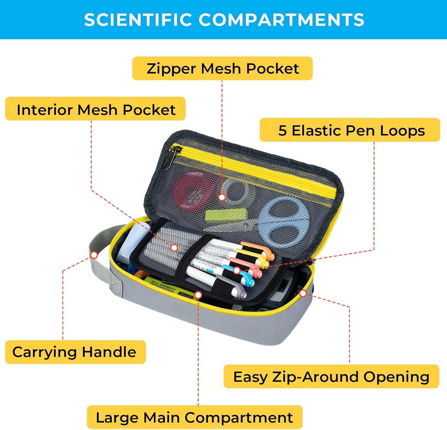 - CONVENIENT DESIGN: ECHSRT focuses on designing high quality bags that are comfortable and practical for you. The sturdy carry Handle lets you easily carry it around. The Elastic Pen Loops are designed to hold your essential pens or specific items for easy access. Two mesh pockets are visible to quickly find small tools, so you can also store tape, erasers, correction tape