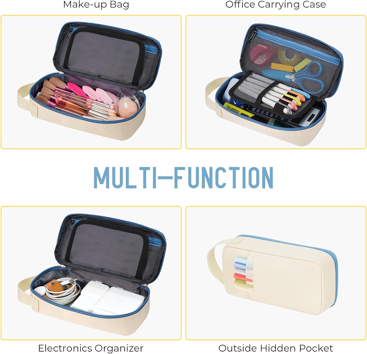 ECHSRT Big Pencil Case, Aesthetic Portable Zipper Pencil Bag with Hidden Pocket, Special Pouch for Men Women Adults, Stationery Organizer Pen Cases for Office Travel,Beige