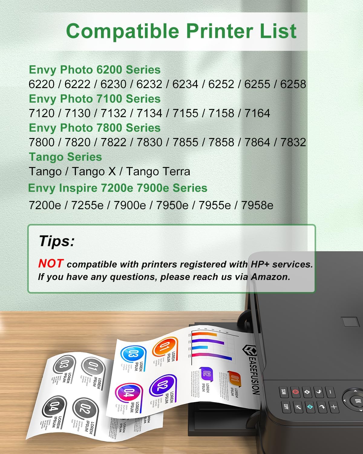 - Exceptional compatibility: EaseFusion 64 xl ink cartridges combo pack replacement for hp64xl hp64 ink cartridges will work flawlessly with your HP Envy Photo 6220, 6222, 6230, 6232, 6234, 6252, 6255, 6258; HP Envy Photo 7120, 7130, 7132, 7134, 7155, 7158, 7164; HP Envy Photo 7800, 7820, 7830, 7855, 7858, 7864; HP Tango, Tango X, Tango Terra printers