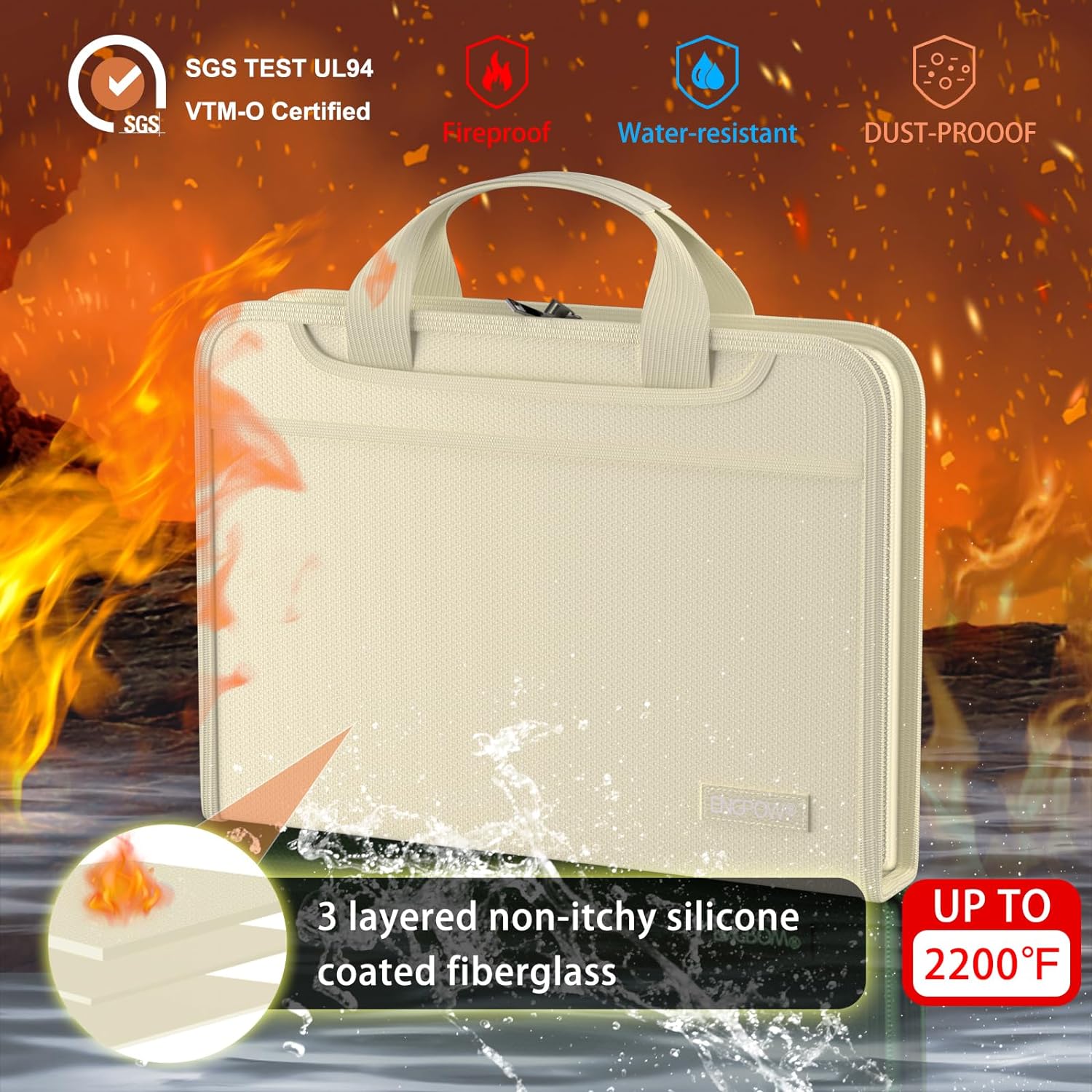 ENGPOW Accordion File Organizer,Fireproof Expanding File Folder with Multi Pockets,13 Pockets Document Organizer Bag with Handle & Labels,Portable Home Travel Safe Storage for Letter A4 Files,Beige