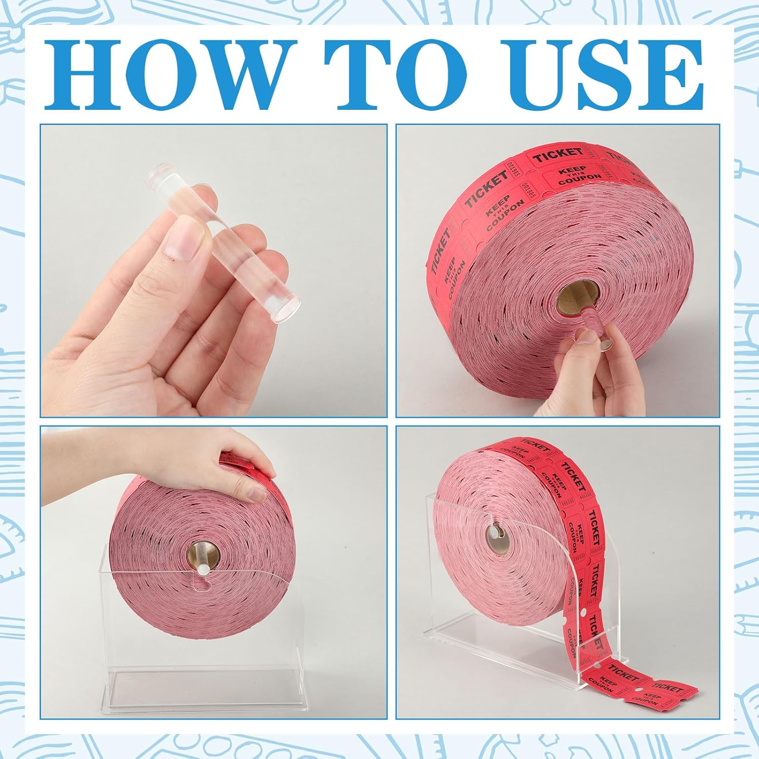 - Smooth Ticket Dispensation: our ticket dispenser puller ensures you a smooth ticket dispensation all through; You simply install one or two rolls of tickets and distribute them through the slot at the bottom; It will simplify your counting and tearing of tickets, streamlining your raffle events and making them more efficient
