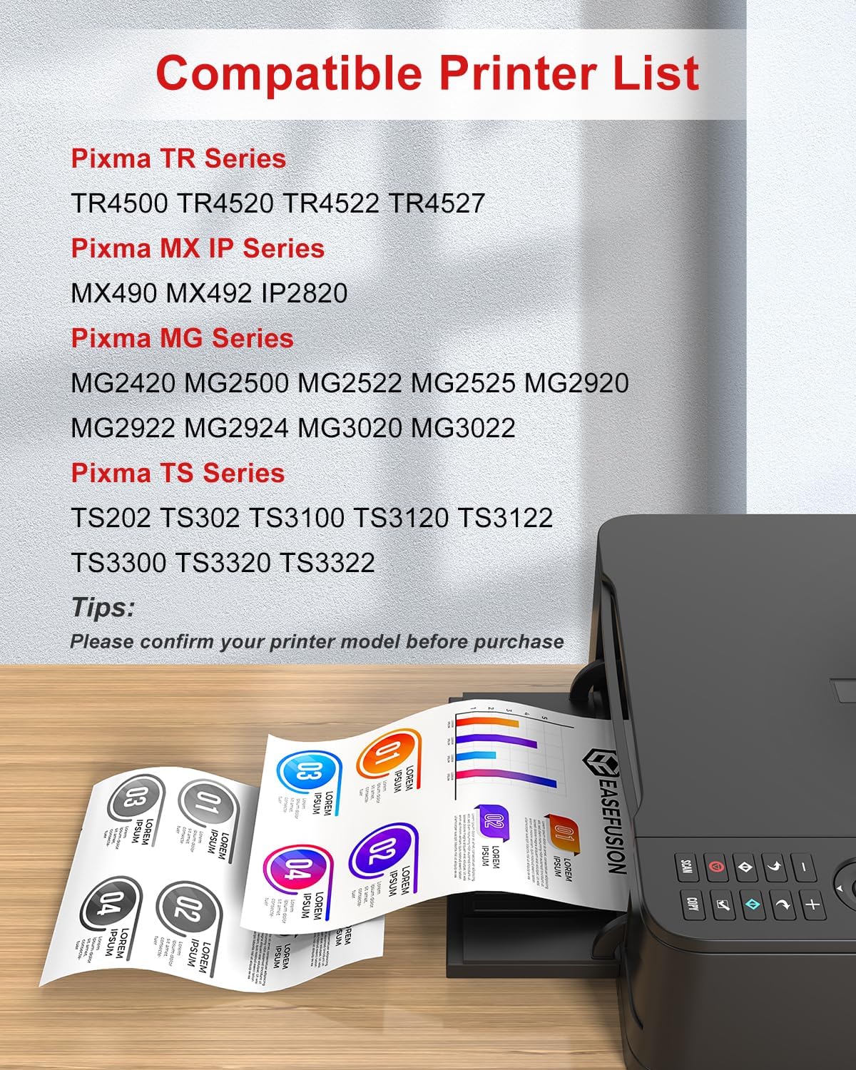 - Compatible Devices : Canon PIXMA TS202 ; Canon PIXMA TS302 ; Canon PIXMA TS3100 ; Canon PIXMA TS3120 ; Canon PIXMA TS3122 ; Canon PIXMA TS3300 ; Canon PIXMA TS3320 ; Canon PIXMA TS3322 ; Canon PIXMA TR4500 ; Canon PIXMA TR4520 ; Canon PIXMA TR4522 ; Canon PIXMA MX490 ; Canon PIXMA MX492 ; Canon PIXMA MG2420 ; Canon PIXMA MG2500 ; Canon PIXMA MG2522 ; Canon PIXMA MG2525 ; Canon PIXMA MG2920 ; Canon PIXMA MG2922 ; Canon PIXMA MG2924 ; Canon PIXMA MG3020 ; Canon PIXMA MG3022 ; Canon PIXMA iP2820 Canon PIXMA TS202 ; Canon PIXMA TS302 ; Canon PIXMA TS3100 ; Canon PIXMA TS3120 ; Canon PIXMA TS3122 ; Canon PIXMA TS3300 ; Canon PIXMA TS3320 ; Canon PIXMA TS3322 ; Canon PIXMA TR4500 ; Canon PIXMA TR452… See more