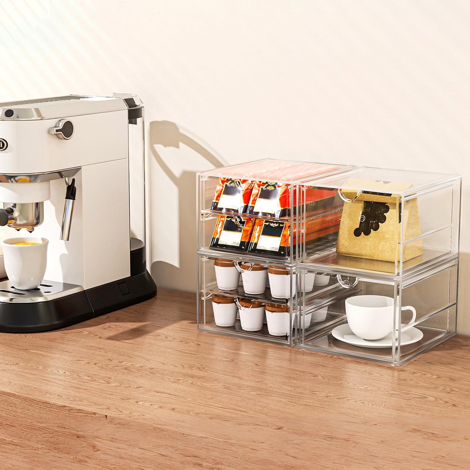 - Durable, High-Quality Acrylic, Dustproof Design: Crafted from shatterproof plastic, this clear drawer storage is dustproof and waterproof, safeguarding your items from dust and moisture. Its sturdy, transparent, and stylish design complements any room's décor. Easy to clean with soap and warm water (not dishwasher safe).