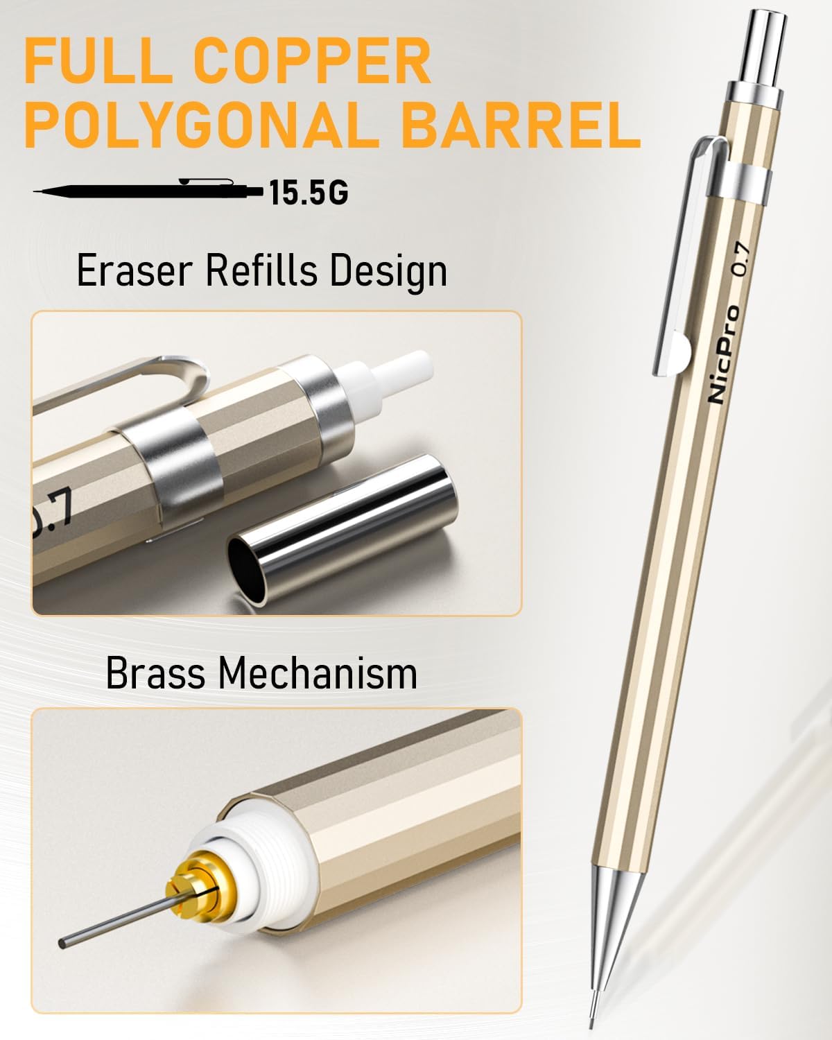 - Good Weight & Smooth Writing: These lead pencils are full-brass metal body provides nice weight balance for fatigue-free writing and drawing.Ideals for artists, professionals, teachers and students alike. Convenient to carry your whole mechanical pencils set everywhere. Perfect for writing, drafting, drawing, sketching.