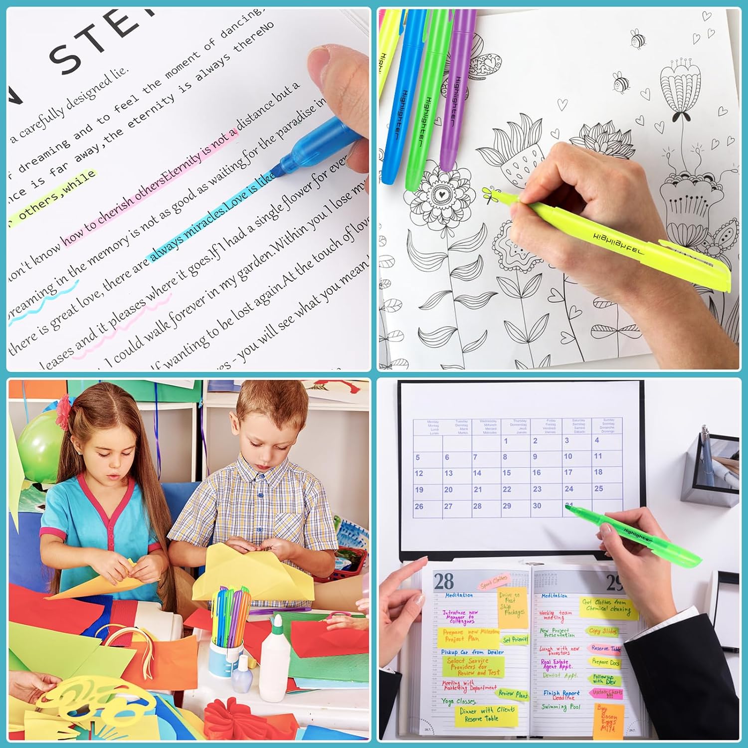 - Highlighter Bulk Set: Our package includes 120 pieces of highlighters in 6 colors, 20 pieces for each color, orange, yellow, blue, green, pink, purple, each color comes with separate bag packaging, The quantity and colors are enough for your daily use in offices, schools, churches, etc.