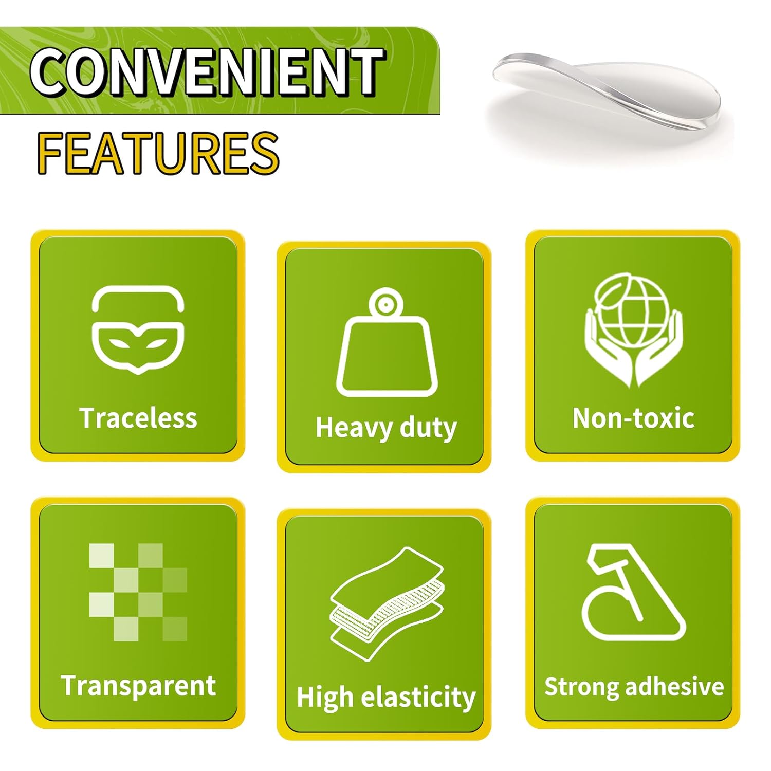 - 【Features】 High viscosity, strong adsorption, not easy to fall off after pasting, not easy to leave marks after cleaning, and will not damage the surface of the object to be adhered.