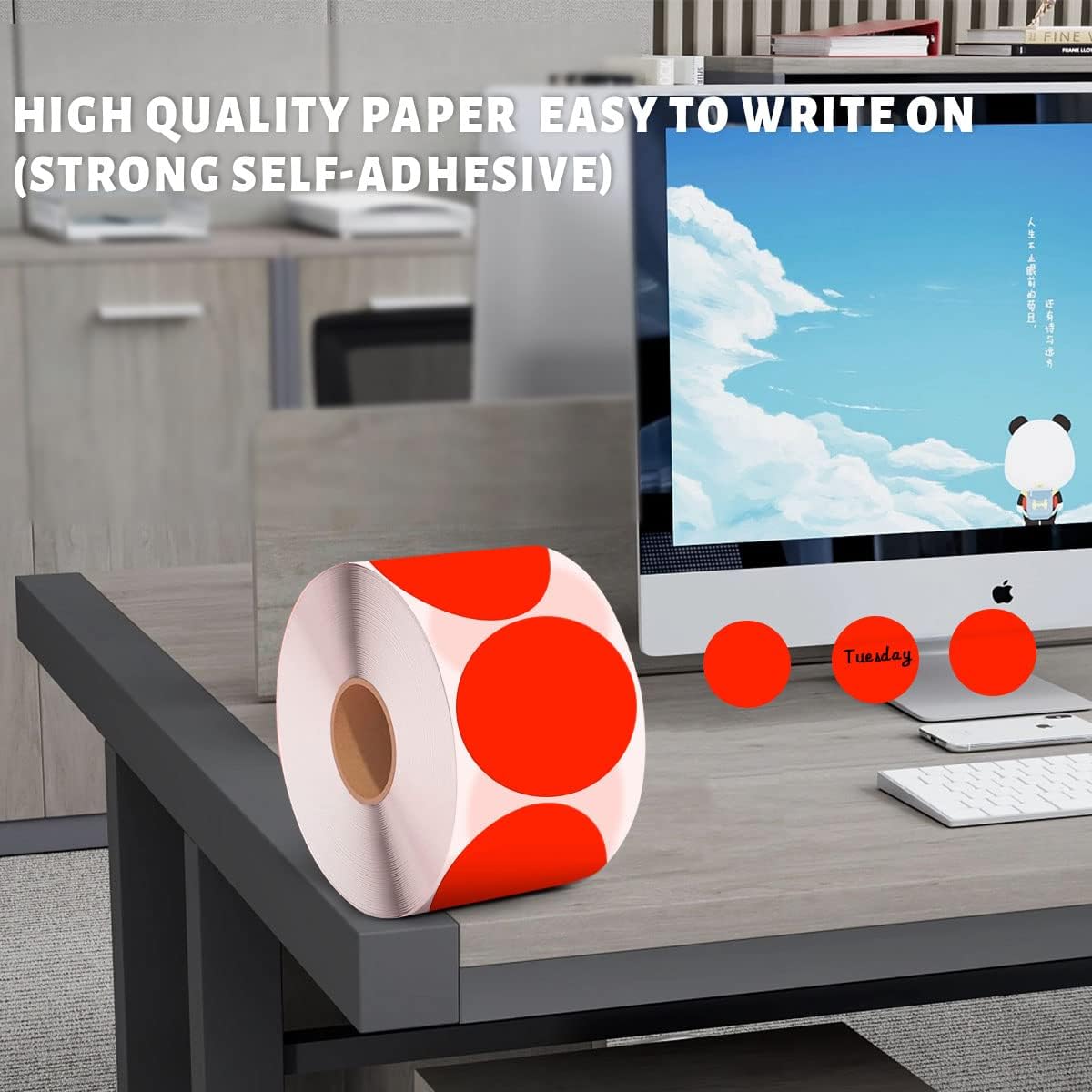 - Permanent Adhesive keeps each 2 inch circle sticker firmly in place on most surfaces.