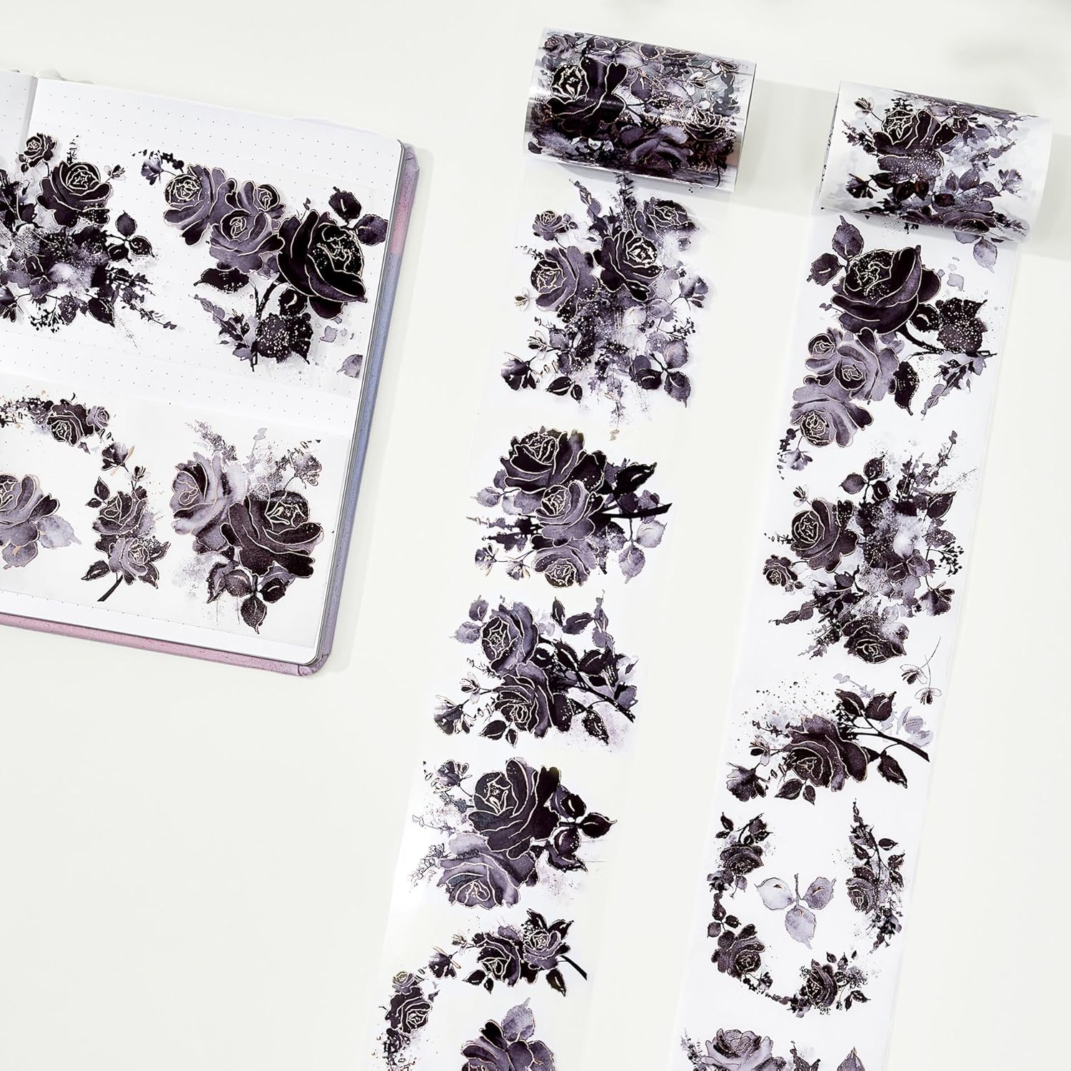 WT Rose Noir Wide Washi Tape Gilded, Single Roll, Original Designs, Black Flower Gold Foil Decors, Journal Scrapbook Bujo Planner DIY Crafts Supplies Gifts, Vintage Floral Adhesive Tape