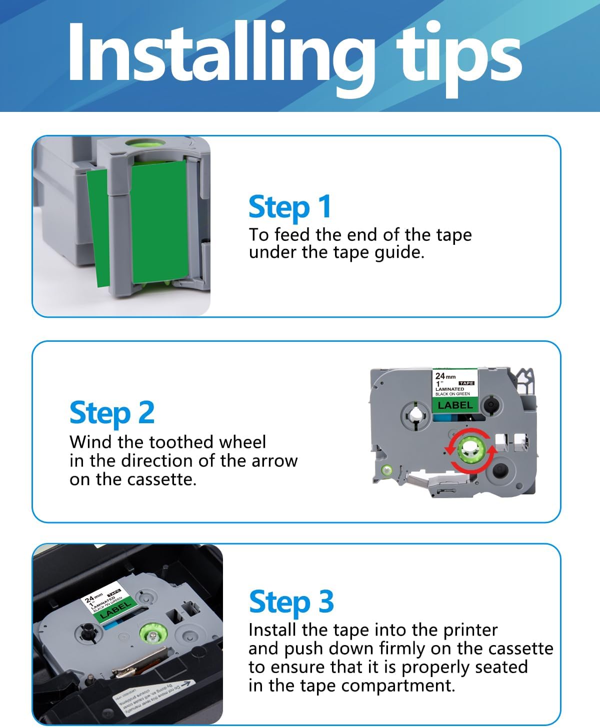 - Compatibility: The 24mm label tape is compatible with a wide range of Brother label printer, including the P-touch Cube Plus, PT-D600, PT-D610BT, PT-P900W, PT-P950NW, PTD600VP, PT-E550WVP, PT-P750W, PT-P800W and more